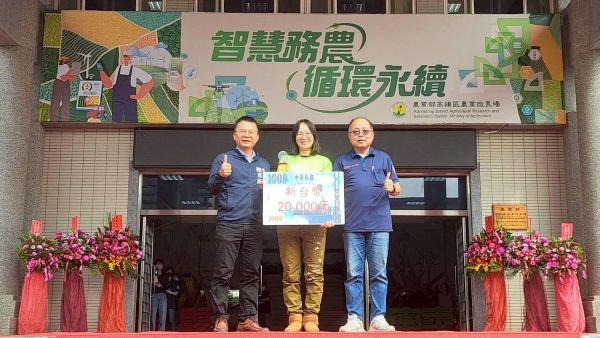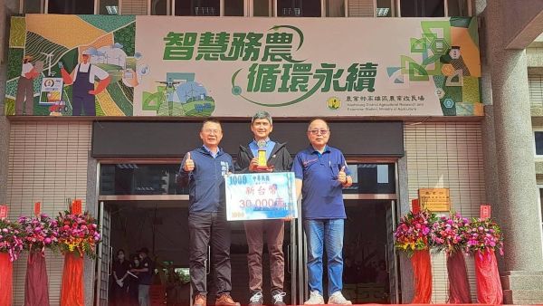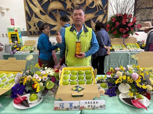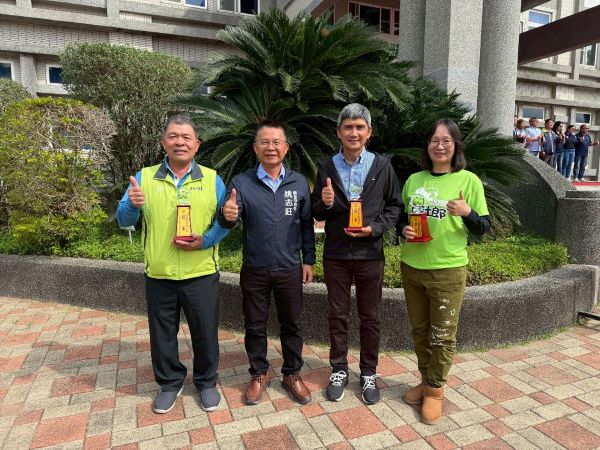 圖1:左一:農業部主任秘書 林家榮、左二:冠軍 賴隆溪、中間:燕巢區農會總幹事 吳俊昌