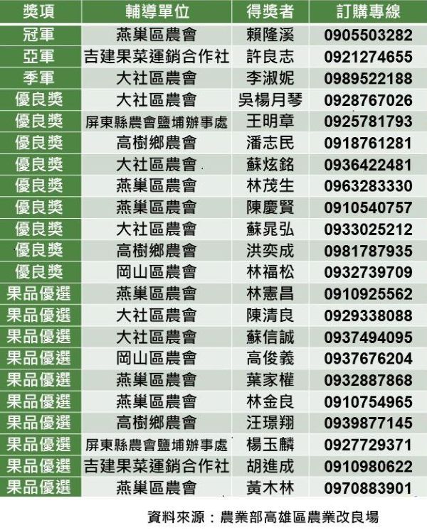 圖6_7:全國蜜棗評鑑揭曉 ,高雄首選蜜棗冠亞季軍全壘打,燕巢蜜棗王賴隆溪七冠王。