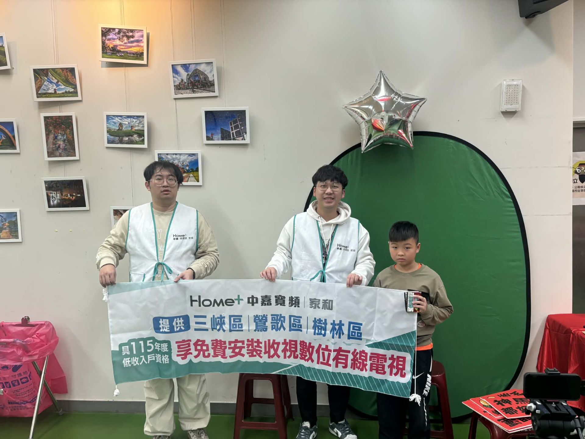 中嘉寬頻|家和大力響應新春在地新春活動,在新春揮毫活動現場搭設簡易攝影棚,邀請有興趣的民眾前來體驗拍攝新春拜年影片,同時介紹公用頻道。隨著智慧科技發展,現今只要透過手機及簡易收音設備,就能拍出不錯的影像作品,因此拜年短片拍攝也全程使用手機,希望讓民眾藉由實際且趣味的簡易攝影棚體驗,用自己的角度在公用頻道上說出最在地的好故事。
