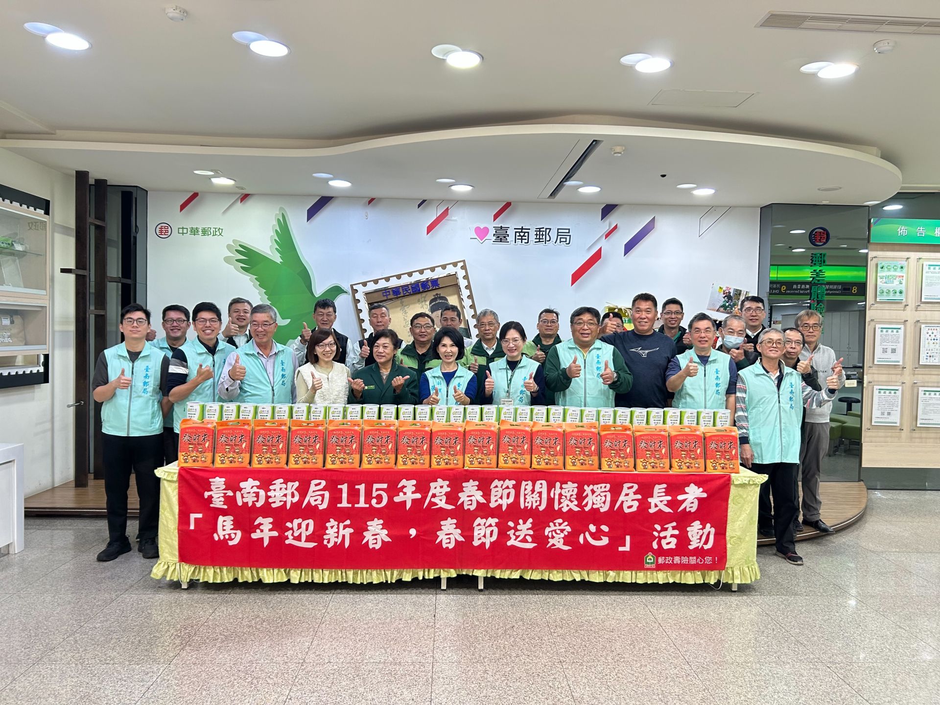 春節即將到來,府城街頭洋溢著濃厚年節氣氛。為讓社會角落的弱勢族群也能度過溫馨佳節,臺南郵局今(3)日在成功路郵局營收股正式發起「馬年迎新春,春節送愛心」關懷獨居長者活動,展現郵政服務深耕地方、關懷弱勢的溫暖精神。