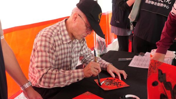 活動現場亦安排客、閩語學習互動環節,讓民眾在遊戲中自然學習節慶吉祥話,提升對母語的認同感與學習意願。現場人潮絡繹不絕,民眾傅先生表示,比起一般印刷品,手寫春聯的字跡更有溫度,也更有傳統文化的美感。民眾吳小姐則說,市面上名家手寫春聯一聯難求,非常感謝南服中心每年舉辦這樣的暖心活動。