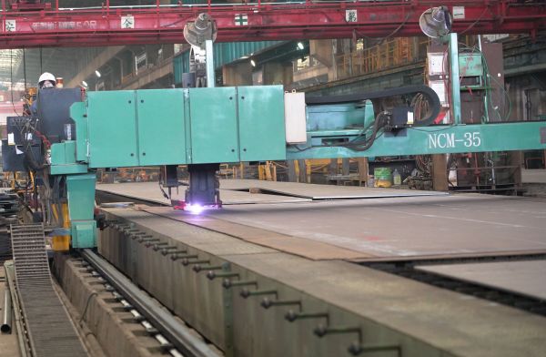 圖4:高緯度遠洋巡護船第三艘開工典禮鋼板割切。