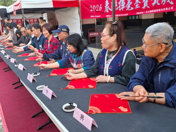 該活動由高雄市創意台灣文化協會理事長王錦成老師率領高雄師範大學文創教室書法團隊共同參與,歐桂華、康美智、陳東煜、許璟芬、張素芬、趙春發、許暉煜、蔡文雅等多位書法名家齊聚一堂,現場揮毫書寫吉祥春聯並贈送民眾,傳遞滿滿的新春祝福。
