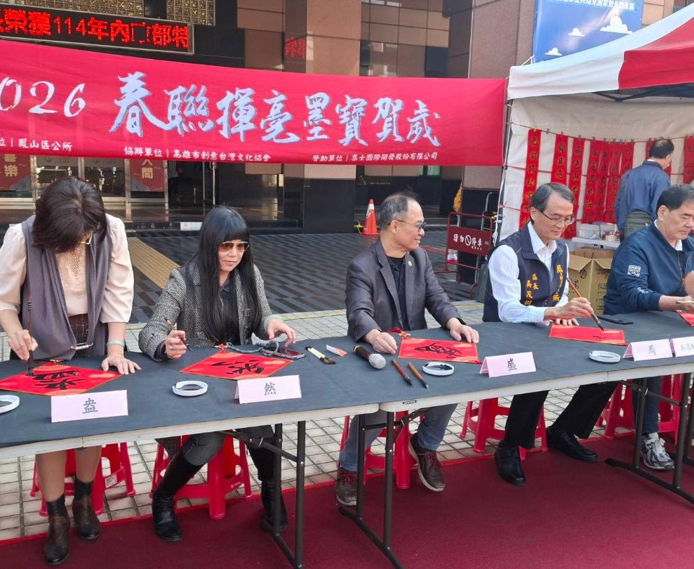 【視傳媒記者吉雄世高雄報導】 鳳山區公所於2月12日在鳳山區公所廣場舉辦「2026 春聯揮毫墨寶賀歲」活動,結合書法藝術展演與民眾互動體驗,現場墨香四溢,洋溢溫馨熱鬧的新春氣氛。