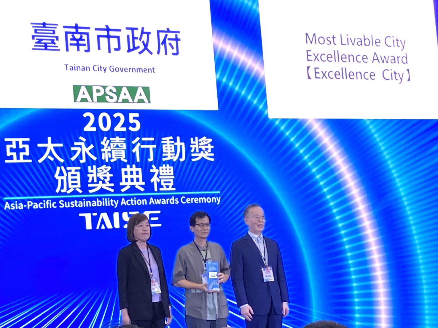 2025年國際獎項表現尤為耀眼,市府於美國繆思設計大獎、金點設計獎、德國柏林設計獎、GOOD DESIGN AWARD及亞太暨台灣永續行動獎等國際舞台上頻傳捷報,涵蓋燈節策展、城市景觀、公共建設、永續發展與智慧治理等面向,突顯臺南在文化創意、城市美學與永續治理上的國際競爭力。2025年國家卓越建設獎,臺南市政府大放異彩,共計奪下1座卓越獎、1座特別獎、1座特別貢獻獎、12座金質獎及16座優質獎,共31座獎項。其中沙崙國民中學轉型為K(幼兒園)至12年級具特色雙語教學示範學校新建工程,獲得最佳規劃設計類「卓越獎」、工務局亞太國際棒球訓練中心統包工程(第二期)」,則是榮獲最佳施工品質「特別獎」,顯見黃偉哲市長推動全民運動風氣及建設友善育兒環境的決心。