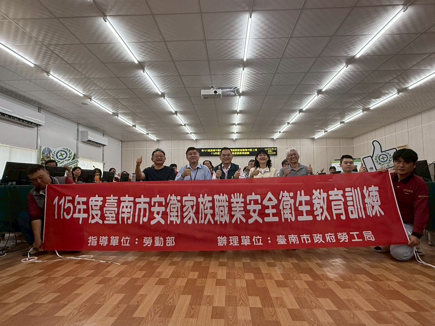 臺南市政府勞工局於今(31)日到新舜營造有限公司辦理「115年度安心舜力安衛家族教育訓練」,透過「母雞」帶領「小雞」的運作機制強化職場安全的觀念,期盼藉由教育訓練宣導模式,透過專業的講師授課,讓家族成員能夠提升安全衛生意識,以達成市長黃偉哲期盼建構的「希望家園」施政理念。