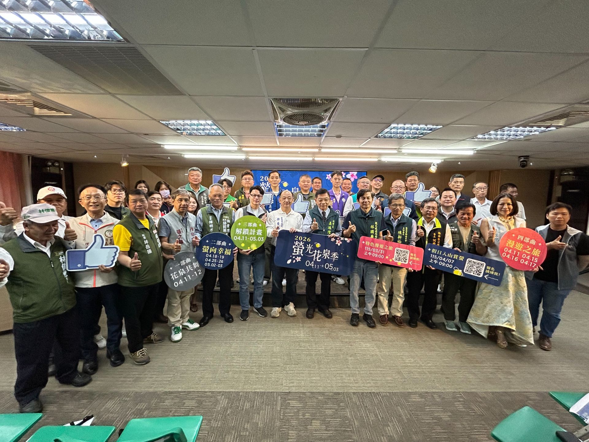臺南市政府觀光旅遊局今(2)日舉辦「2026螢光花泉季」宣傳記者會,正式宣布年度春季觀光盛事將於4月11日熱鬧登場,以「花泉共舞」、「螢向幸福」、「解鎖計畫」及「漫遊之旅」四大主題串聯,結合溫泉體驗、賞螢生態、消費抽獎與特色遊程,活動一路延續至5月3日,全面展現楠西山城的春日魅力。此次記者會由此次記者會由姜淋煌副市長、觀光旅遊局林國華局長、西拉雅國家風景區管理處陳美靜秘書、客家事務委員會陳新裕主任委員、楠西區公所何榮長區長、市議員許至椿、周奕齊本人,以及立委陳亭妃、王定宇、林俊憲、議長邱莉莉、余柷青、蔡宗豪、林美燕、蔡淑惠、李啟維、蔡筱薇、楊中成、周嘉韋、陳怡珍等議員服務處代表,及臺南在地公協會代表等貴賓共同出席,齊力為活動揭開序幕。
