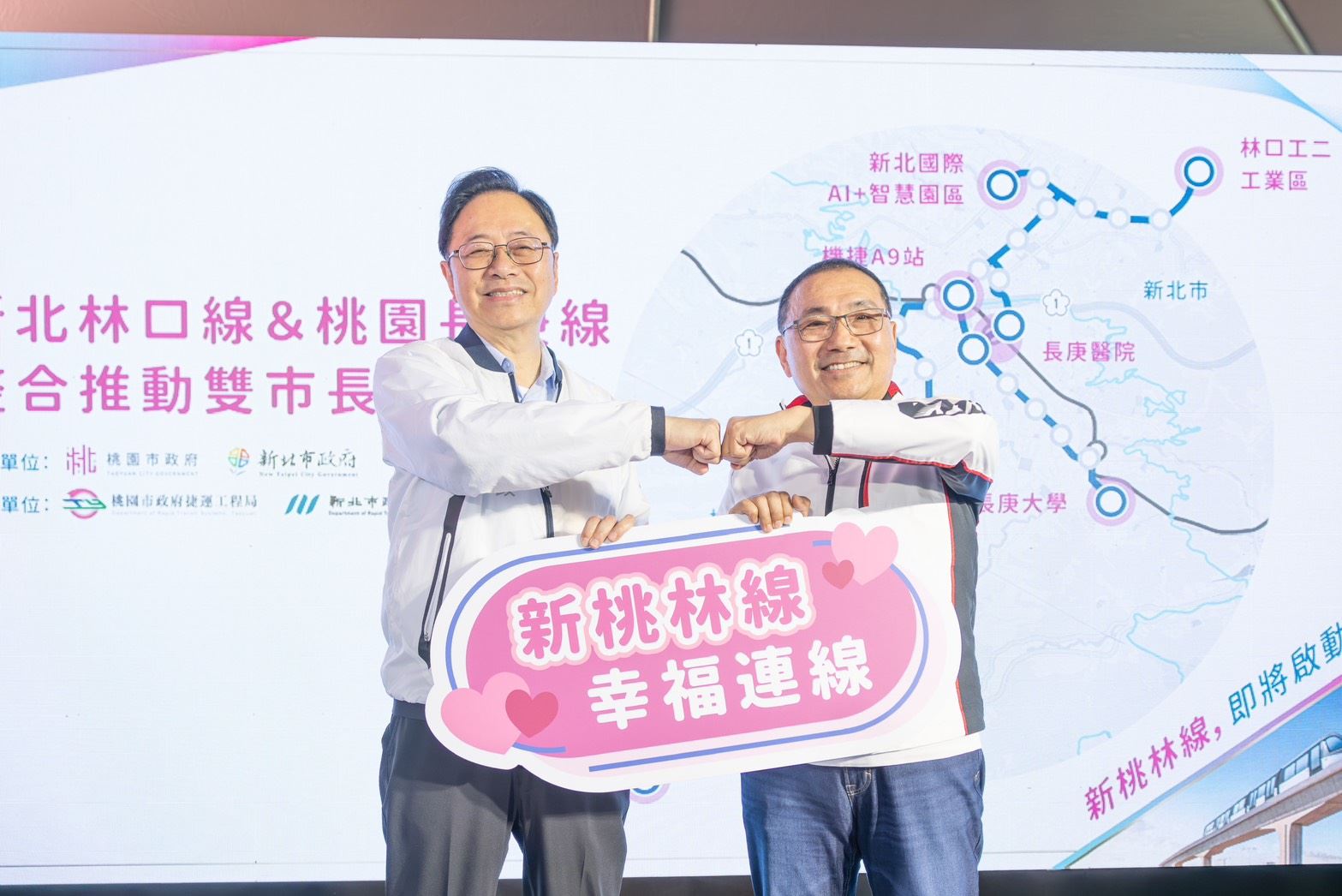 張善政表示,桃園和新北一直合作密切,這次一起推動捷運建設,希望中央能盡快核定讓工程早點開工。侯友宜也說,林口、龜山到桃園通勤的人很多,交通真的很需要改善,這條線可以大大提升效率,也象徵兩市合作共好的「幸福連線」。根據規劃顯示,新桃林線全長約26公里,大部分是高架路段,會設32個車站,還有2座機廠,今年會先將可行性研究送中央審查,如果順利則希望在民國128年可以完工。