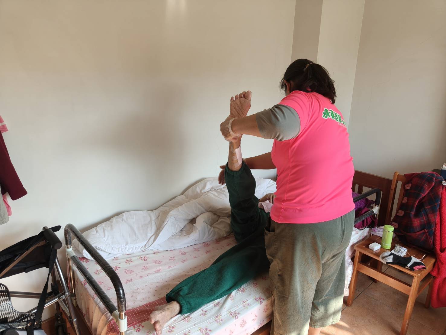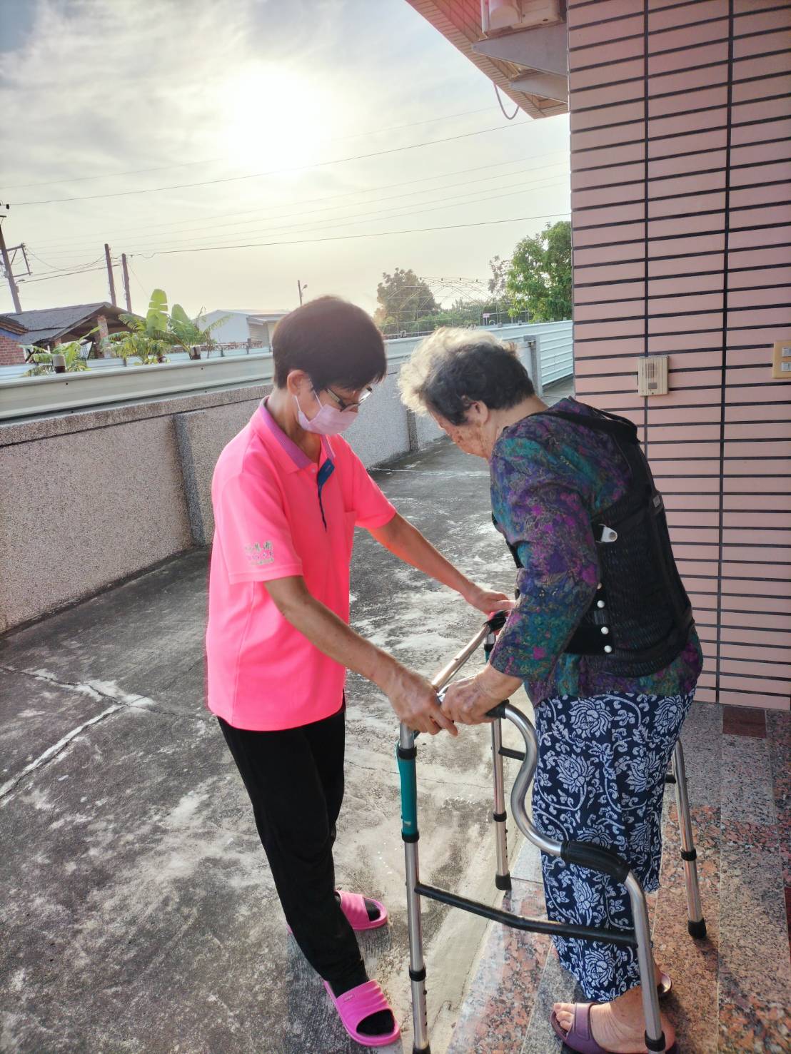 在許多社區裡,清晨與傍晚總能看見長輩外出散步。對他們而言,「走得動」,不只是身體健康,更是一種維持生活自主的方式。樂活永春居家的服務個案葉媽媽過去也是這樣的長輩,每天固定外出健走,是她長年維持的生活習慣。然而,一次看似平常的外出,卻因一時體力不支踩空跌倒,緊急送醫後診斷為「腰椎及骶骨壓迫性骨折」,需住院接受骨水泥治療。出院後,葉媽媽只能躺在床上,一切生活起居都只能在那張床上,吃飯、排泄,連洗澡都是,葉媽媽看著離床一公尺的房門,她好希望能自己走出房門,恢復她原本健康自在的生活。葉爸爸看到鄰居申請樂活永春居家服務,減輕了家人照顧的負擔,家庭重拾歡樂,抱著至少能幫葉媽媽洗頭、沐浴的姑且心態,撥打1966長照專線提出申請。沒想到永春的居服員除了幫葉媽媽清潔身體,恢復爽朗乾淨的好心情。在居服員專業的陪伴服務下,引導並鼓勵葉媽媽練習翻身、自主坐起,到扶著助行器站立、慢慢踏出步伐,葉媽媽一步一步找回身體的力量與對生活的信心,她終於能夠克服那一公尺的障礙,走出房門恢復以往的活力與光彩。