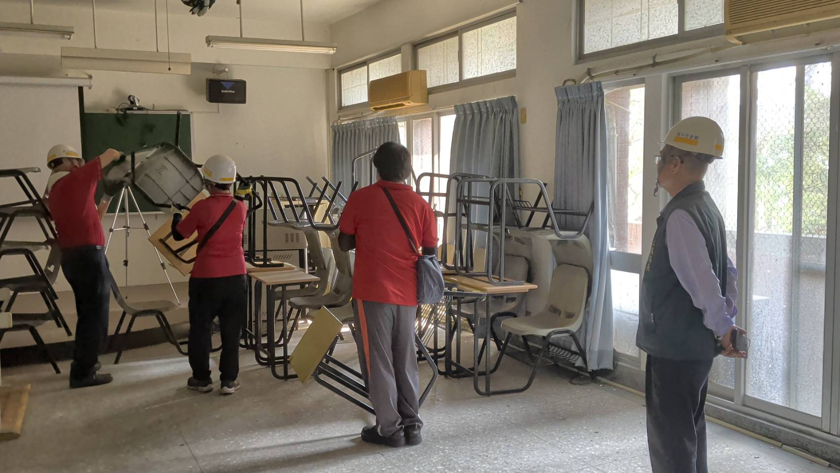 ▲大台南總工會、台南市勞工志願服務協會、電氣工會及泥水工會偕同志工整理放置二手家具空間。(勞工局 提供)