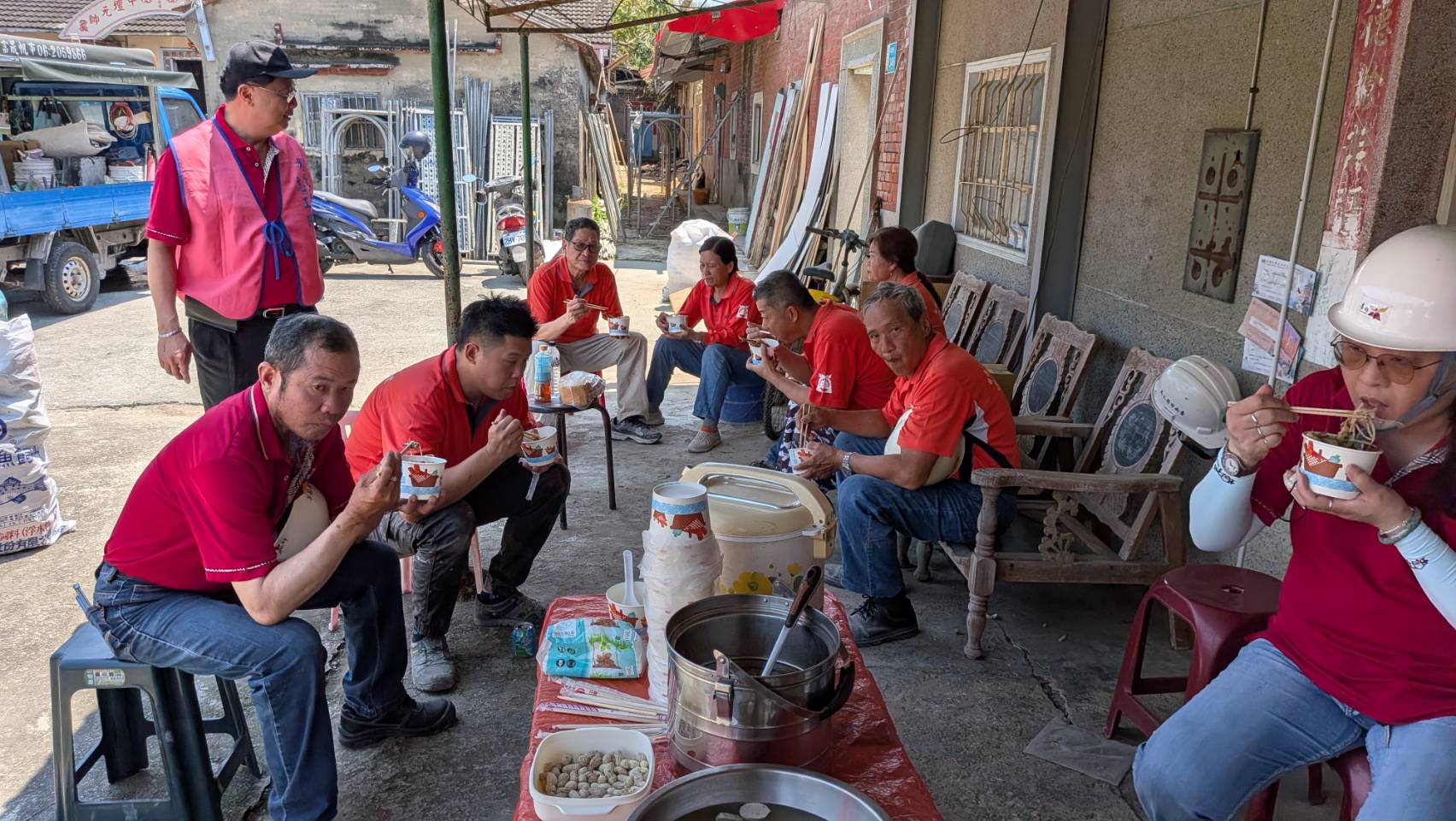 ▲餐飲工會郭國仁理事長和夫人錢畇方也特別貼心響應,於當天準備熱騰騰餐食送到修繕現場,提供志工們補充體力。(勞工局 提供)
