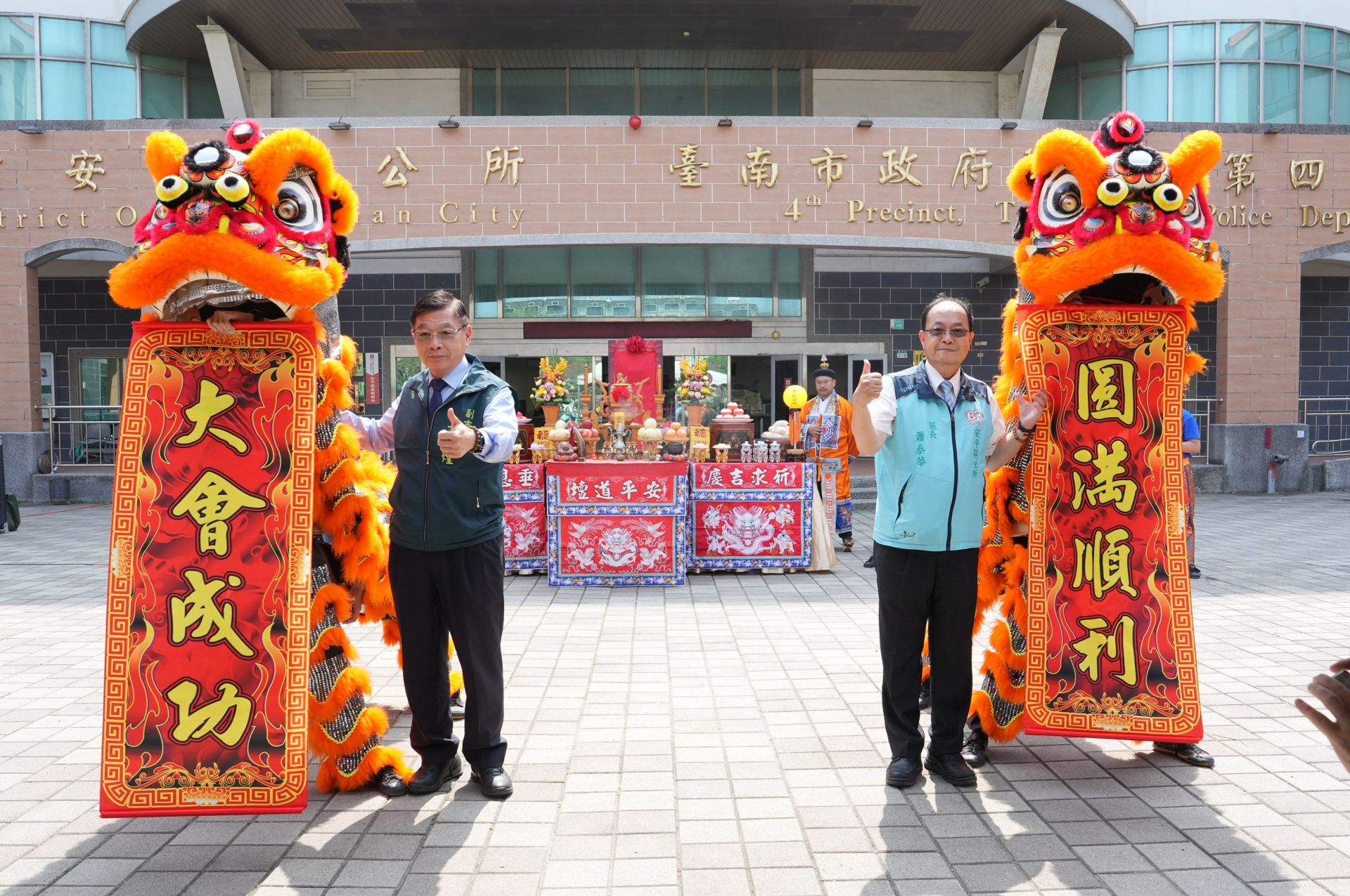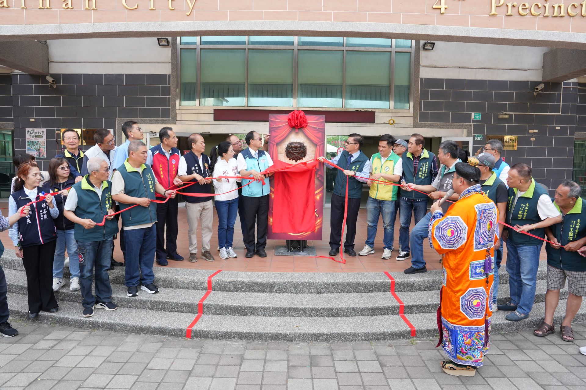▲劍獅納福-政通人和 安平區公所劍獅牌誌揭幕 場面莊嚴。(安平區公所 提供)