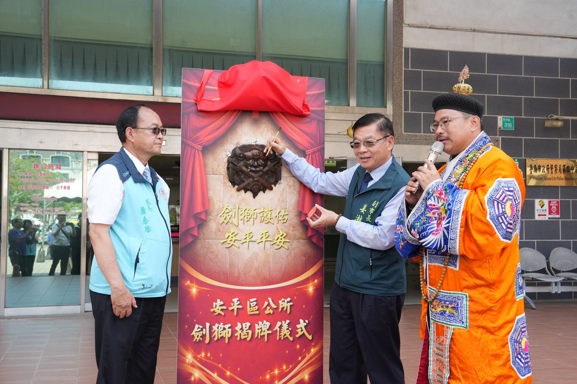劍獅納福-政通人和 安平區公所劍獅牌誌揭幕 場面莊嚴