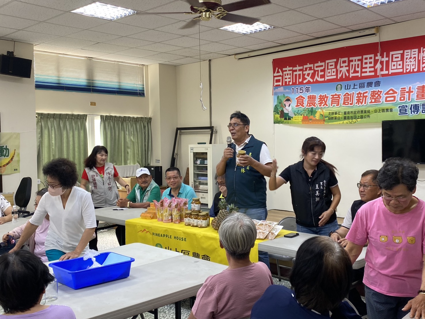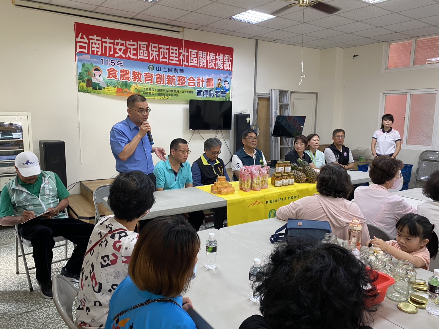 為推廣在地優質農產並深化食農教育理念,臺南市政府農業局攜手山上區農會,於今(22)日在安定保安宮舉辦「115年度鳳梨在地食農推廣教育活動」,並同步辦理「食農教育創新整合計畫」記者會,展現跨區域合作推動食農教育的成果與決心,透過多元體驗與品嘗活動,邀請民眾一同認識鳳梨的多元風味與價值,現場氣氛熱絡、參與踴躍。