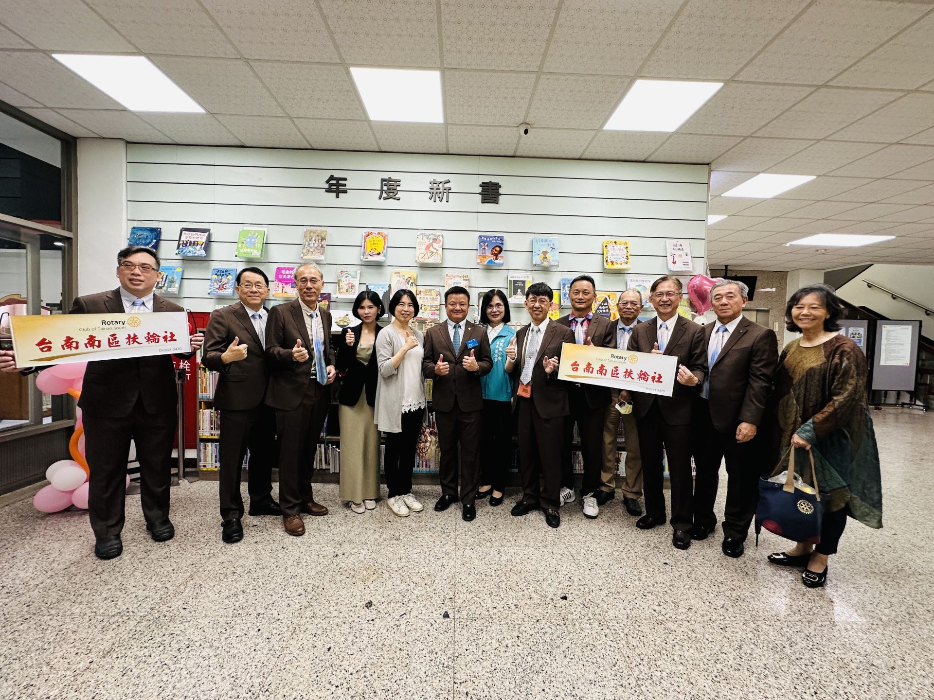 ▲台南南區扶輪社50週年 捐贈喜樹圖館圖書要讓小朋友深化閱讀。(記者黃雋淮 攝)