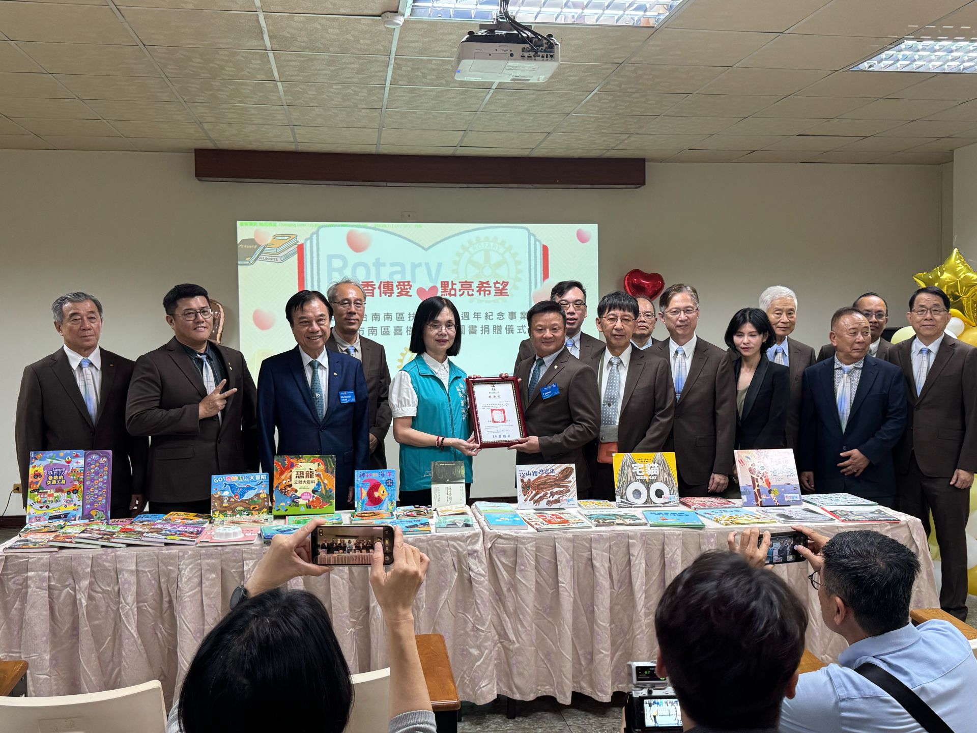 為支持學子閱讀學習、充實公共圖書資源,台南南區扶輪社今(22)日於喜樹圖書館舉辦書籍捐贈儀式,由現任社長鄭全南代表捐贈1,752冊優良書籍,其中包含臺南市教育局所打造的閱讀理解平臺「布可星球」相關書籍,期盼緩解多數學生面臨借書不易、預約書籍等待時間過長的困境,讓閱讀資源能更即時陪伴孩子成長。南區區長蕭琇華親自出席受贈,感謝扶輪社造福鄉里,為社區注入豐沛的閱讀資源。