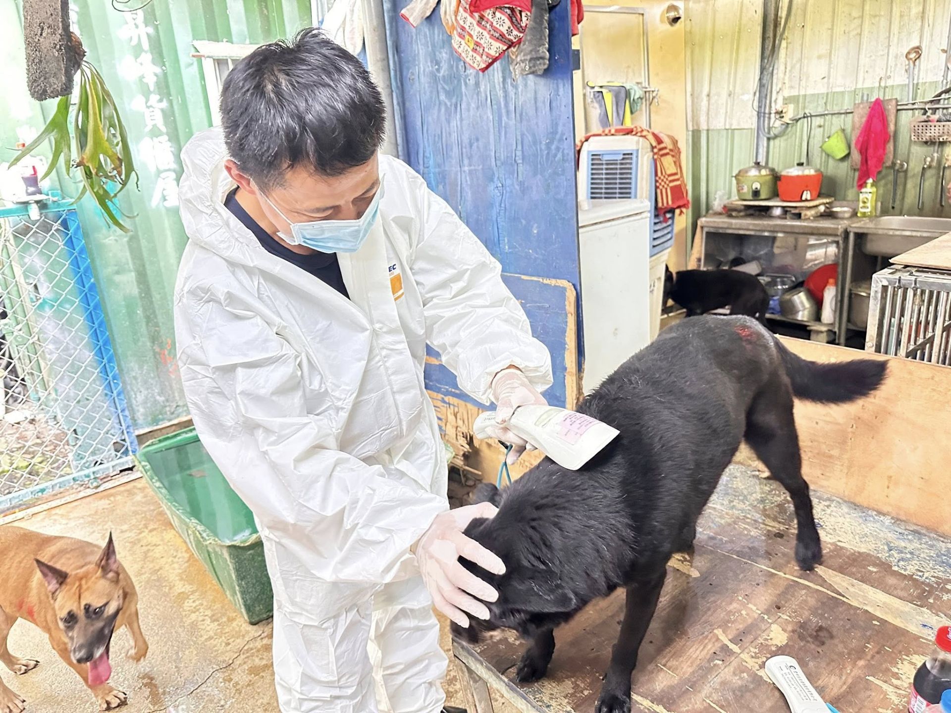 苗栗縣動防所表示,收容課每季皆主動訪視轄內民間狗場,提供多項免費服務,包括犬貓狂犬病疫苗施打、晶片掃描與身分確認、飼養數量清點、晶片植入及寵物登記資料更新(含除戶),並協助環境消毒,落實動物管理與源頭控管。