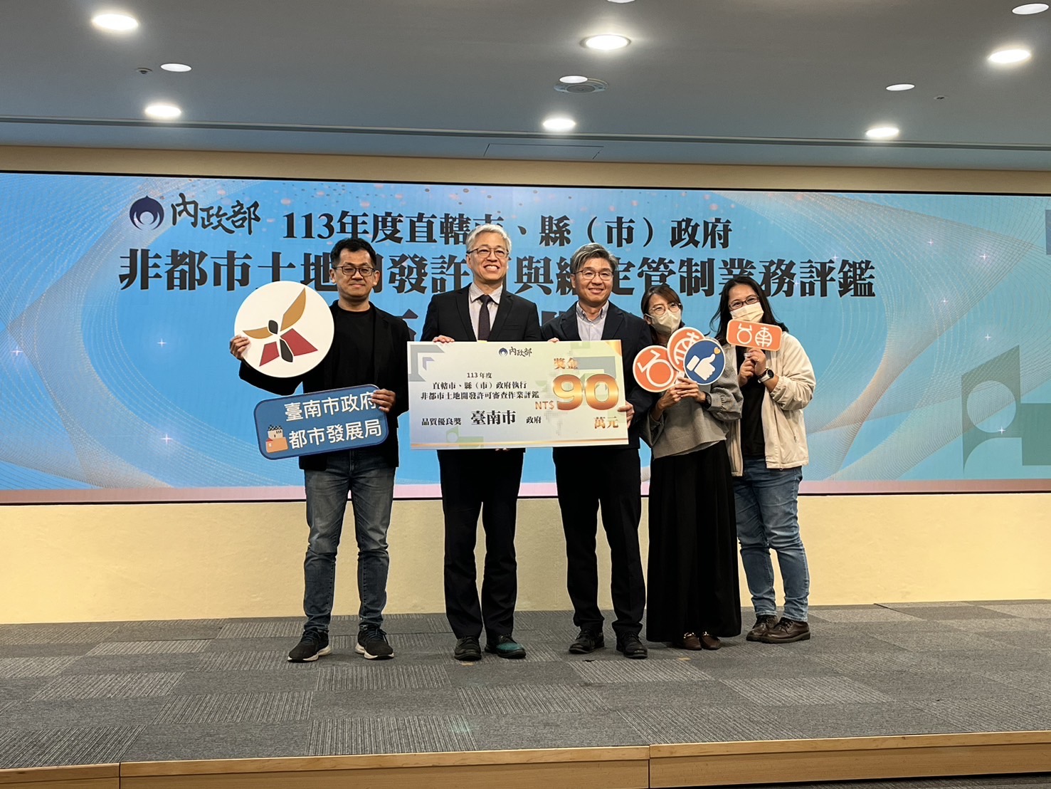 ▲台南市非都審議效能曾獲全國評鑑雙項殊榮,114年獲品質優良獎。(都發局 提供)