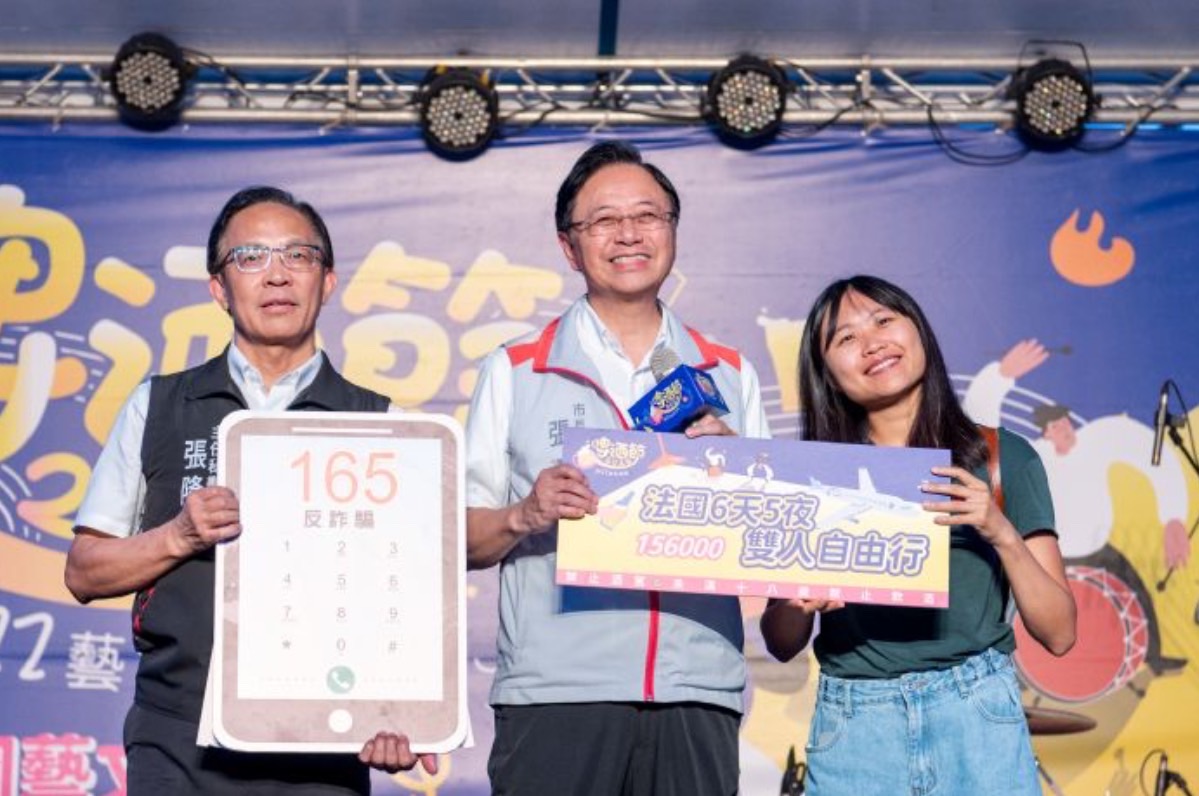 今日活動結合「反詐騙有獎徵答」,由張市長抽出中獎序號,中獎的市民朋友答對問題即可抽獎,獎項包括:市值15萬6,000元的「法國6天5夜雙人自由行」、8萬6,400元的「東南亞航線雙人來回機票」、8萬元的「日本大阪5天4夜雙人自由行」、東南亞航線不限航點來回機票等,現場氣氛相當熱絡,不僅推廣反詐騙意識,也為活動帶來可觀人潮。