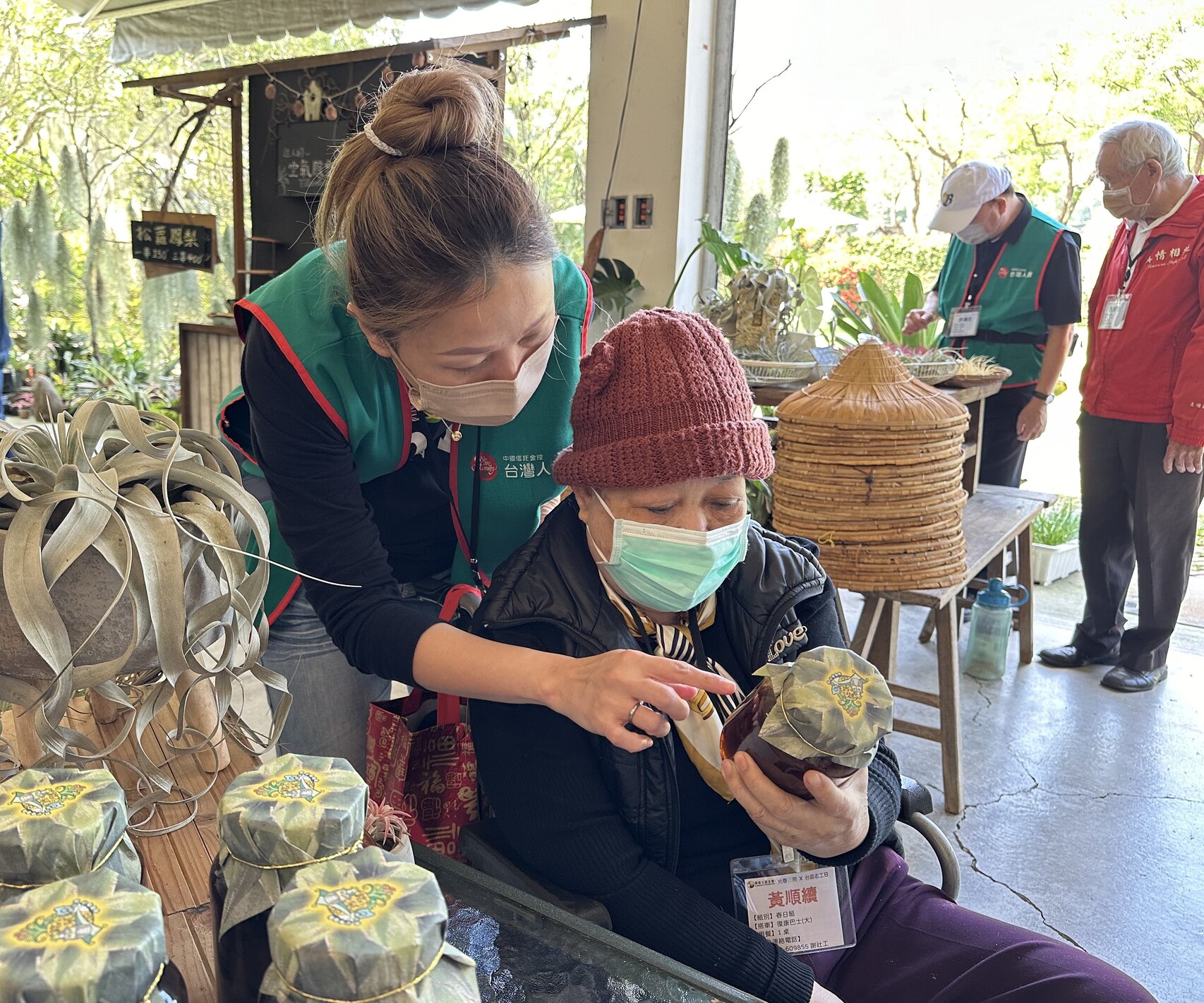 「志工蓋好!一直把我的手牽牢牢,都不放手!」活動尾聲,長輩們將親手製作的鳳梨酥贈與志工,表達滿滿的感謝之意。阿蕊阿嬤在返程車上主動獻唱一首歌感謝志工的陪伴,她感性地說:「志工小姐好像我的女兒,超疼我!」