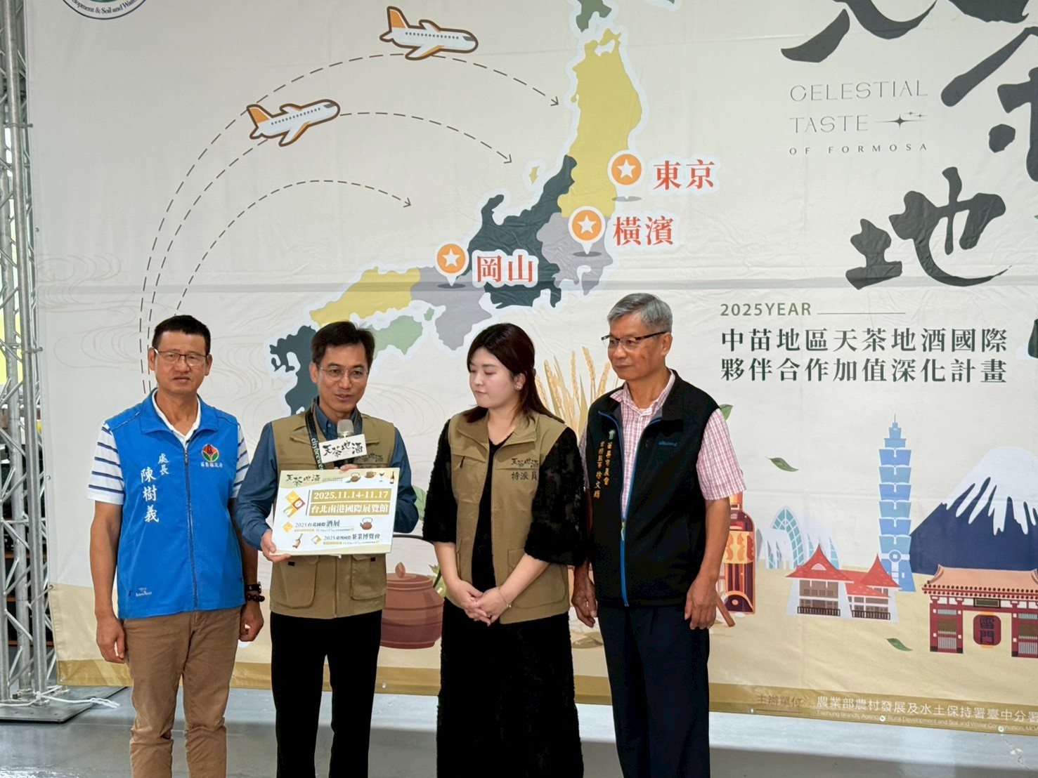 本次成功出口日本的「天茶地酒」全系列產品,同時會也將在114年11月14日至17日於南港國際展覽館舉辦的「國際咖啡茶酒展」中展出。歡迎有興趣的民眾把握機會,親臨現場參觀選購,一同為揚名海外的中苗地區農村特色茶酒與好物給予行動支持。