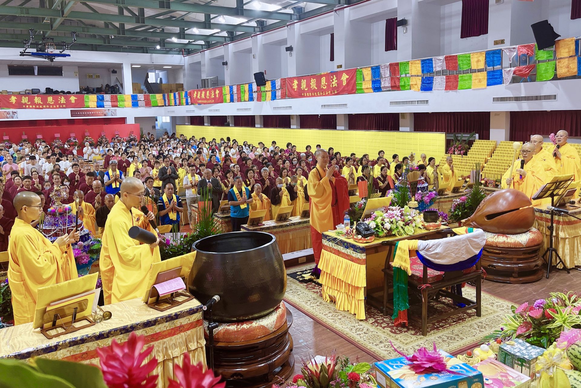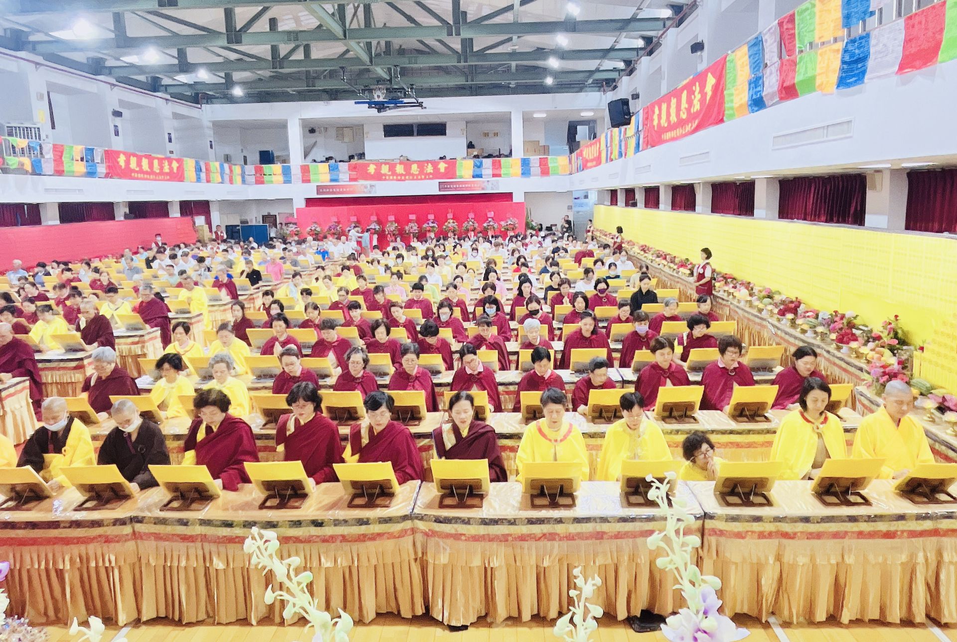 ▲500多名善信恭誦《大乘金剛般若寶懺》、《地藏菩薩本願經》,場面莊嚴吉祥殊勝。(圖:中華國際佛教聞修正法會提供)