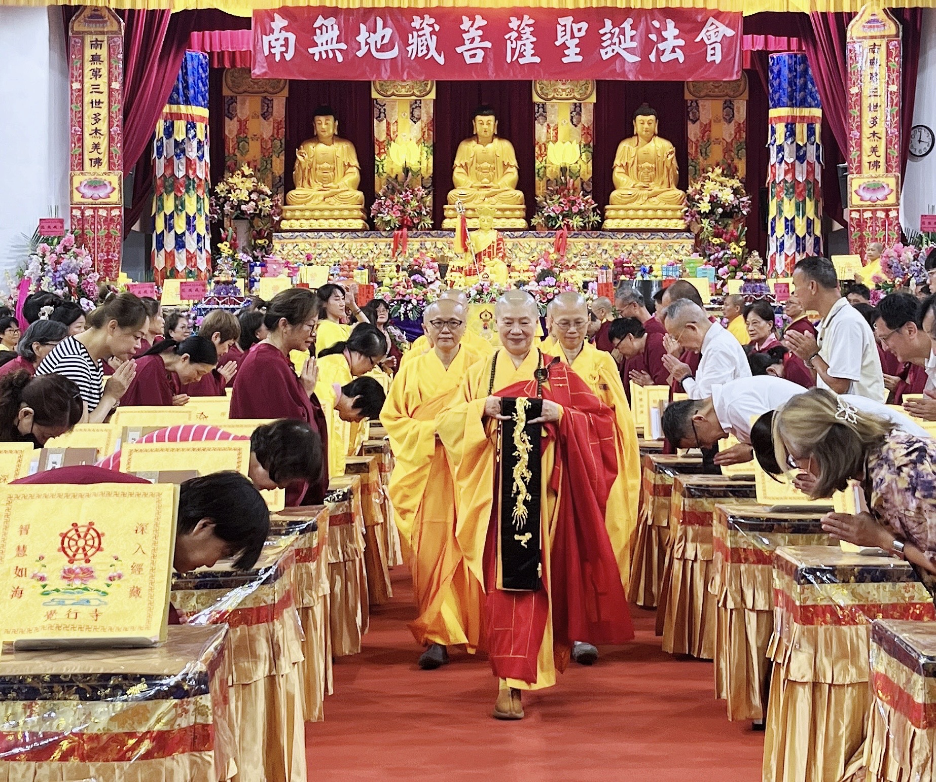 ▲聖德 釋證達教尊主法南無地藏菩薩聖誕法會,出家師、仁波切、阿闍黎、聞法上師及善信大眾分立東西兩單虔誠恭迎。(圖:中華國際佛教聞修正法會提供)