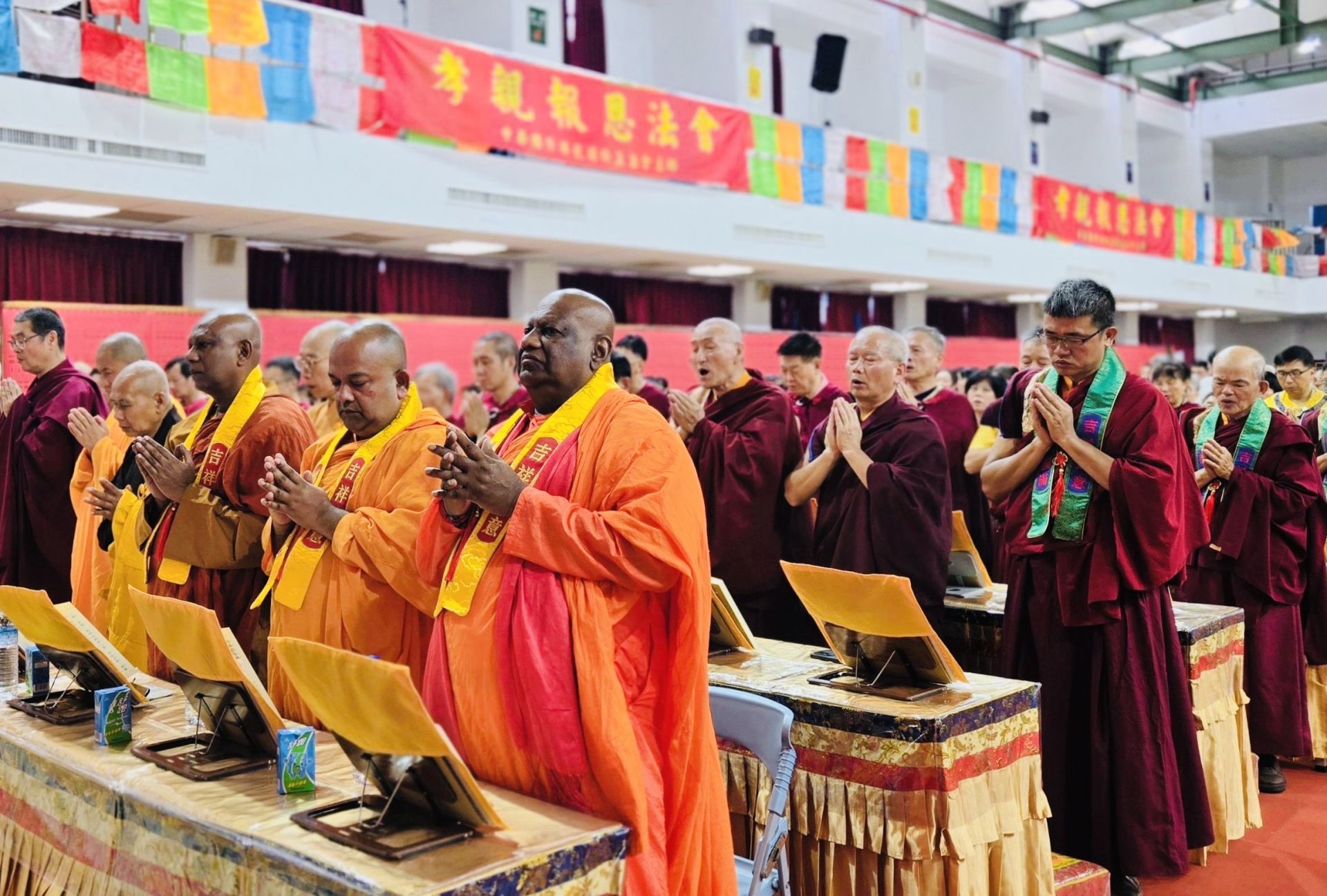▲聖德釋證達教尊與僧團及來自台灣、日本、越南、美國、香港等地區的善信大眾法會圓滿後合影。(圖:中華國際佛教聞修正法會提供)