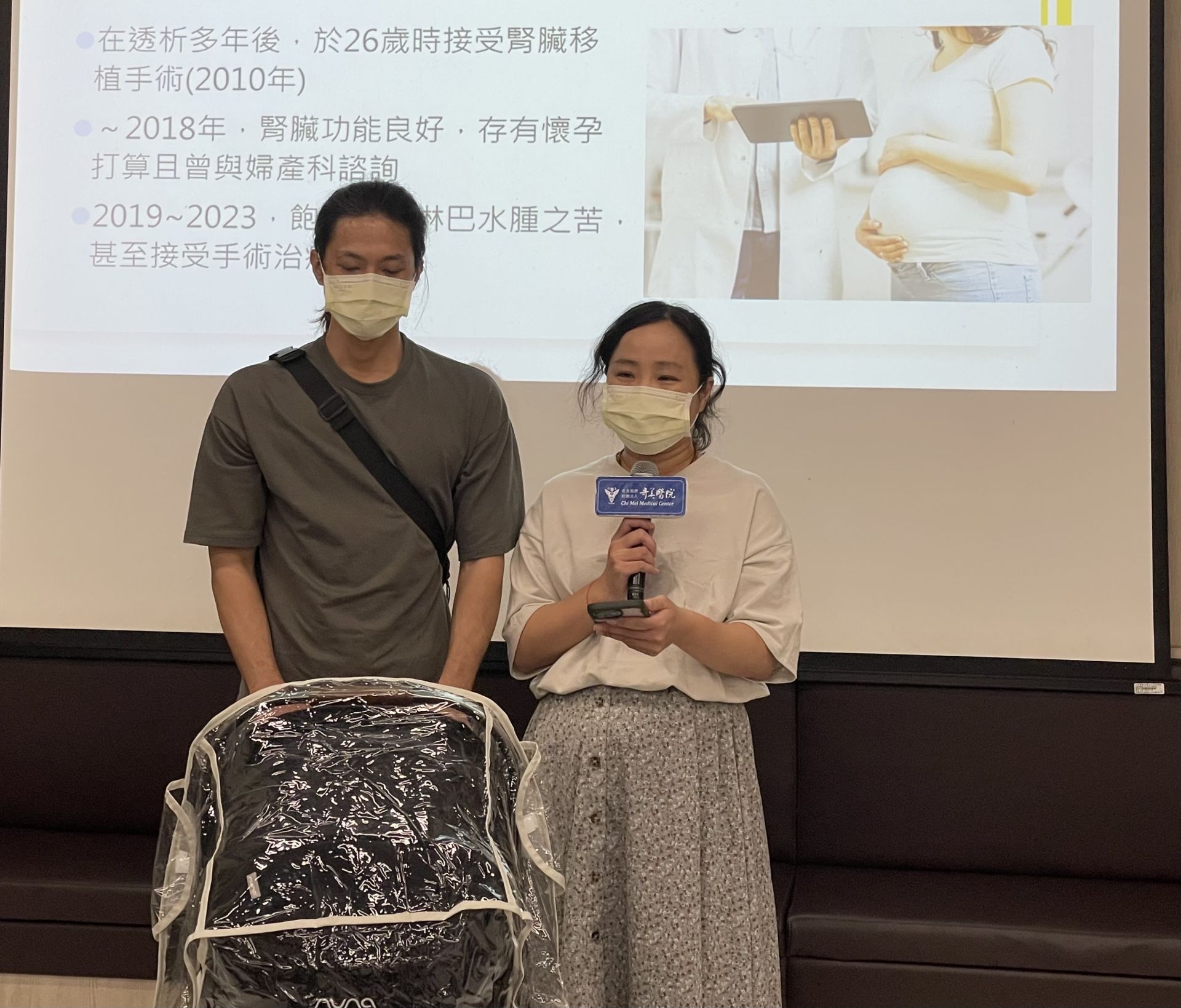 奇美醫院10月9日舉辦一場溫馨的滿月派對,寶寶在滿月前夕,與父母親一同公開亮相,分享這段充滿淚水與希望的奇蹟歷程。佳里奇美醫院院長田宇峯指出,腎臟衰竭會造成女性內分泌失調,導致月經不規則甚至停經,讓受孕變得非常困難。多數洗腎中的女性難以受孕,即使成功懷孕也面臨剖腹產、早產和低出生體重等高風險。根據台灣健保資料庫和出生登記資料統計,2001至2012年間全臺僅有97例腎臟移植女性成功生產,比例僅為每2萬6400名新生兒中有1例,可見其罕見性。