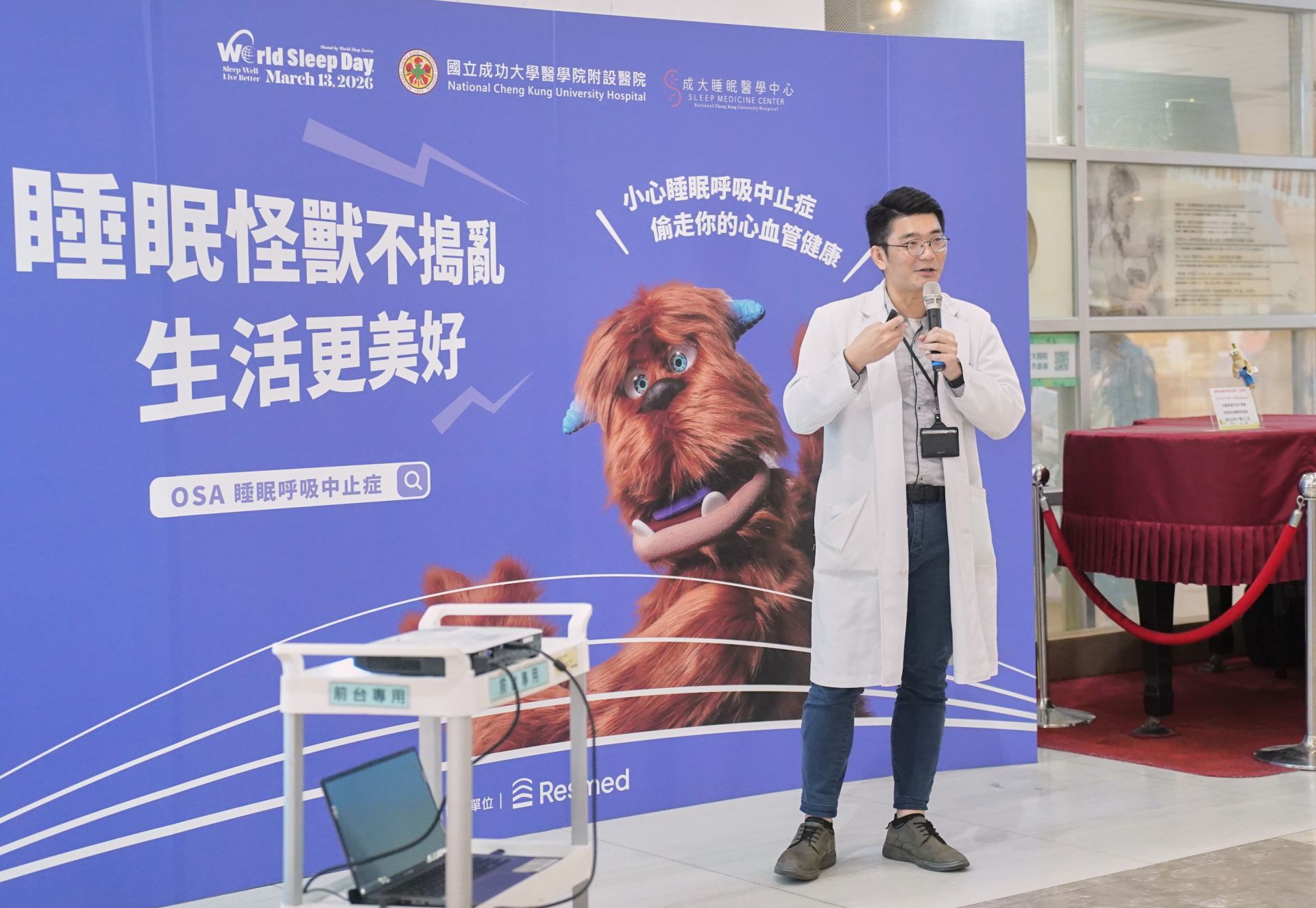成大醫院響應世界睡眠日,於3月18日至4月1日舉辦為期兩週「響應世界睡眠日衛教策展-睡眠怪獸(OSA)不搗亂,生活更美好」活動,透過專題講座、互動衛教及健康問卷調查等多元形式,提升民眾對睡眠健康與睡眠呼吸中止症的認識。