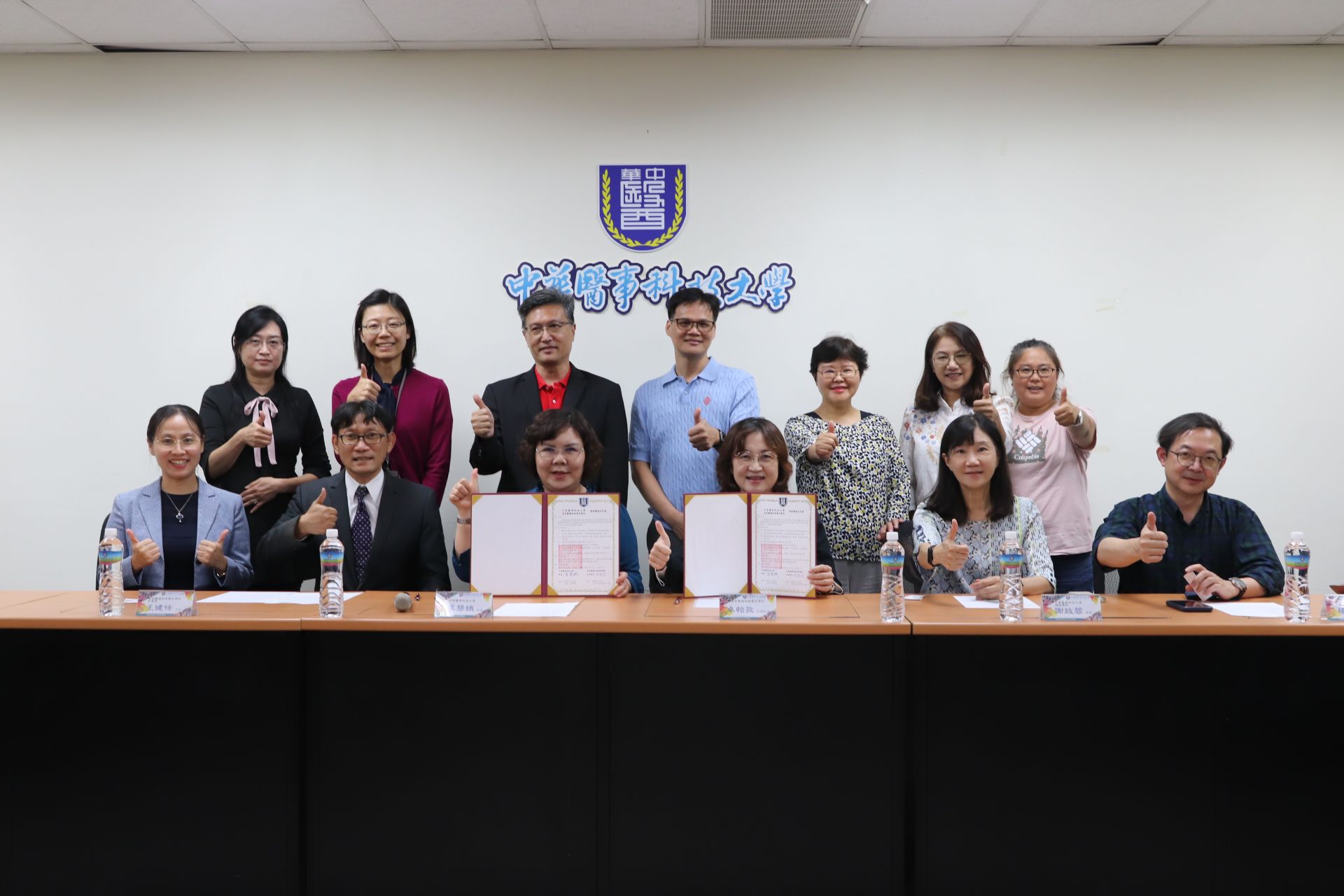 簽約結盟儀式下午2時在中華醫大舉行,由中華醫大校長李碧娥和育英醫專代理校長卓怡孜代表雙方簽署,中華醫大醫事學院院長楊堉麟、護理學院院長謝政蓉、民生學院院長姜泰安等3院院長偕同相關系科主任,育英醫專秘書室主任王健任、護理科主任陳孟勤、老人健康服務事業管理科主任林盈諄、化妝品應用與管理科主任朱立雯等,一起出席見證雙方啟動跨校合作契機。