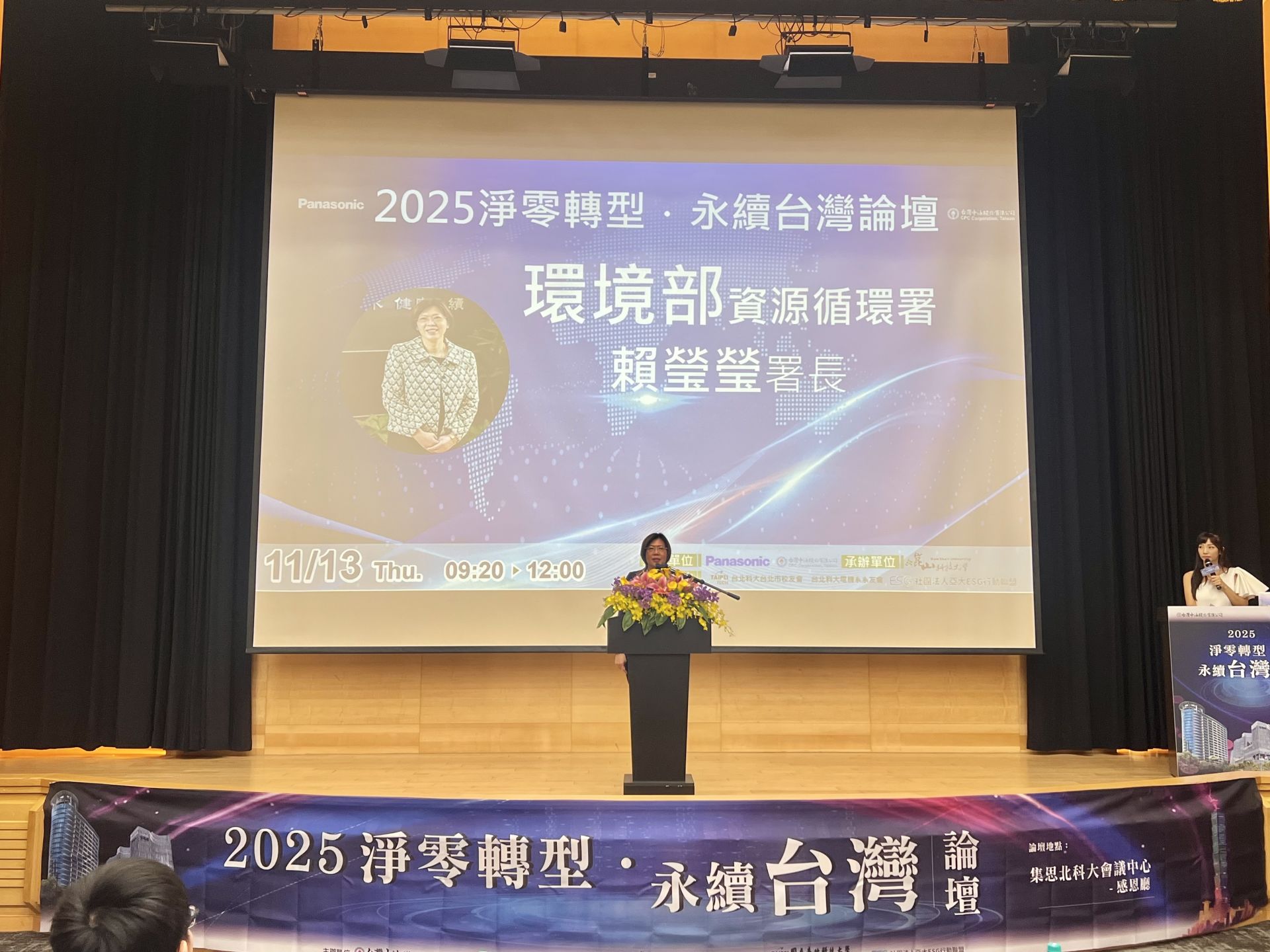 行政院環境部資源循環署賴瑩瑩署長表示,環境政策是企業面對國際的護身符,台灣與國際接軌,針對氣候極端災變、能源安全、以及國土城鄉韌性相互牽連的課題進行討論,結合社會集體智慧,來應對各類型挑戰。從低碳到零碳,邁向2050淨零轉型的急迫性,永續未來將是刻不容緩的趨勢。感謝台灣中油股份有限公司和台灣Panasonic 集團共同舉辦 「2025淨零轉型.永續台灣論壇」,邀集產官學界專家學者進行專題交流,