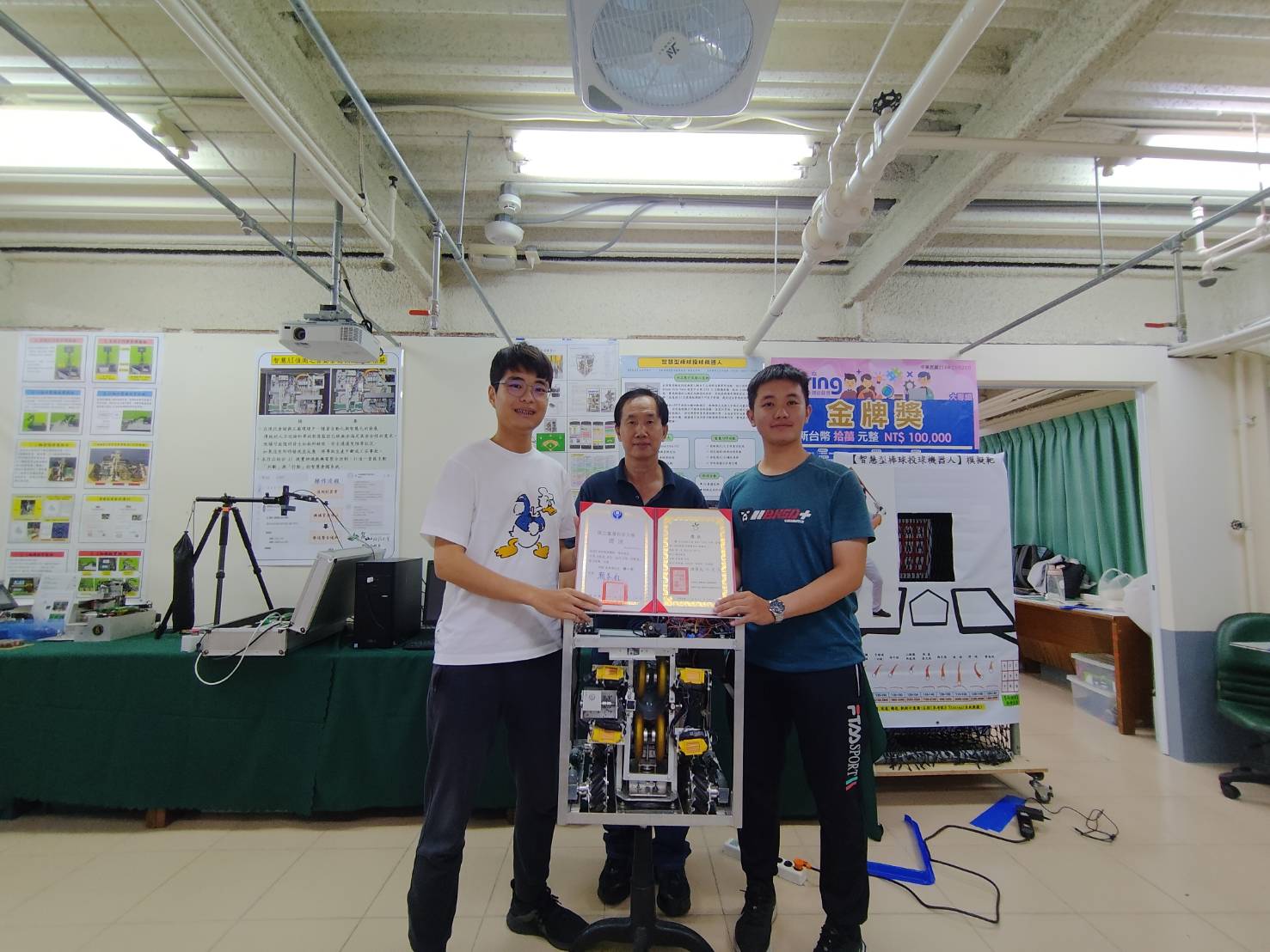 ▲電機系以作品「棒球投球智慧機器人創業」榮獲創業構想組第一名,由侯順雄學術副校長(左)頒發獎項。(圖/崑山科大提供)