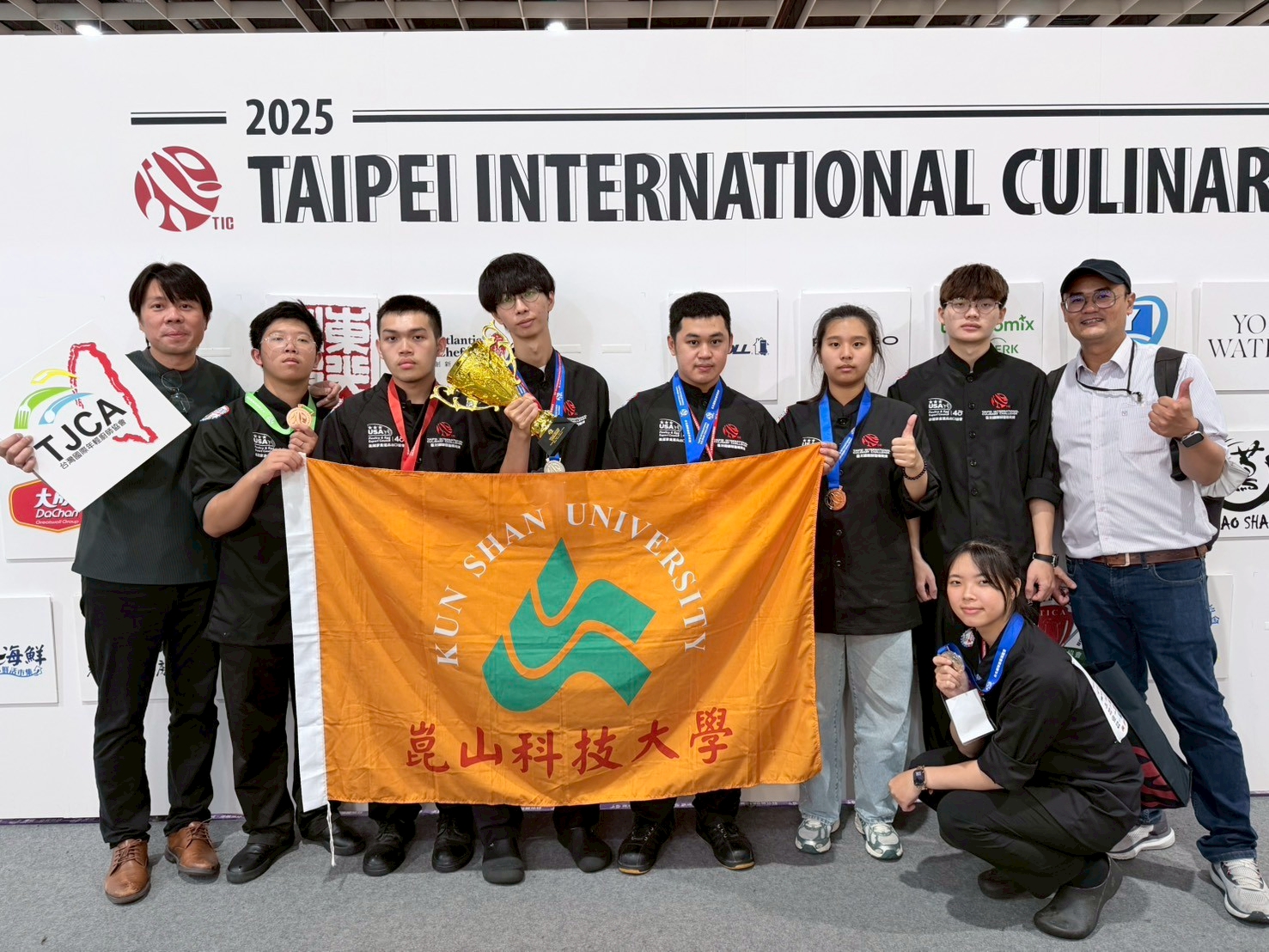 ▲餐飲系師生團隊參與「2025台北國際廚藝挑戰賽」,共收穫10面獎牌。(圖/崑山科大提供)
