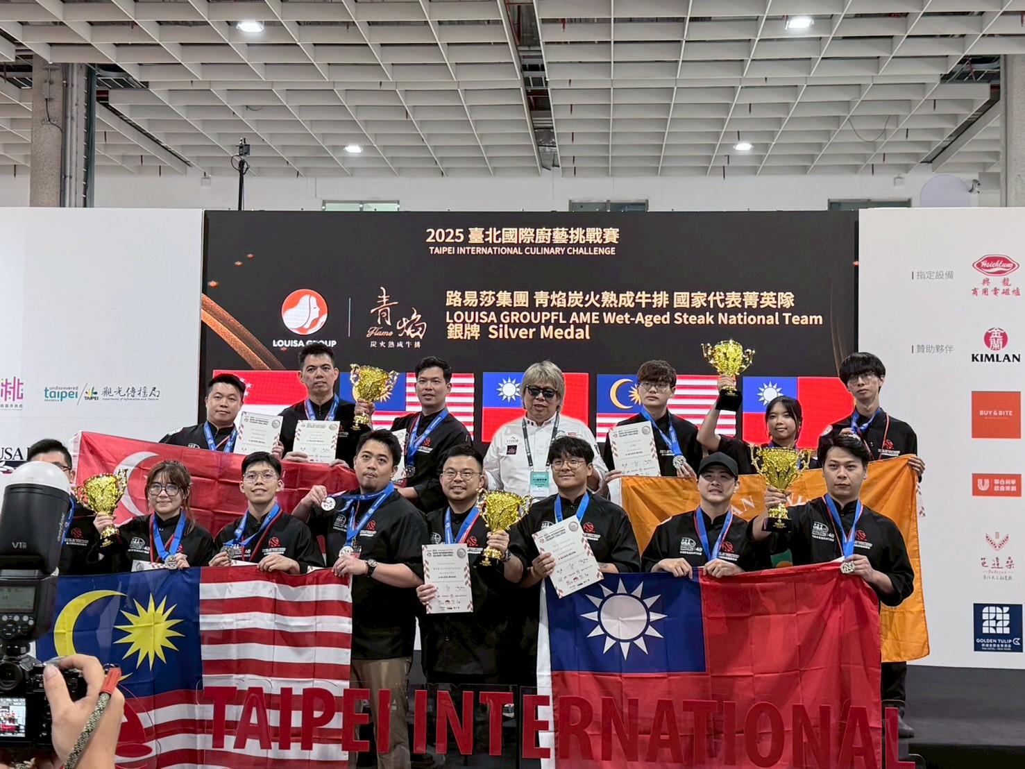 其中二年級許博智、三年級許之睿及四年級周佳怡三位同學組隊參與本賽事中的「國家代表菁英隊」項目,以「台灣之旅」為套餐主題獲得銀牌,呈現跨地域、跨文化的料理詮釋,套餐從前菜、主菜到甜點皆以台灣地景與飲食文化為軸線,串聯一趟從南而北的美食旅程,理念清晰,意象鮮明,深受評審肯定。