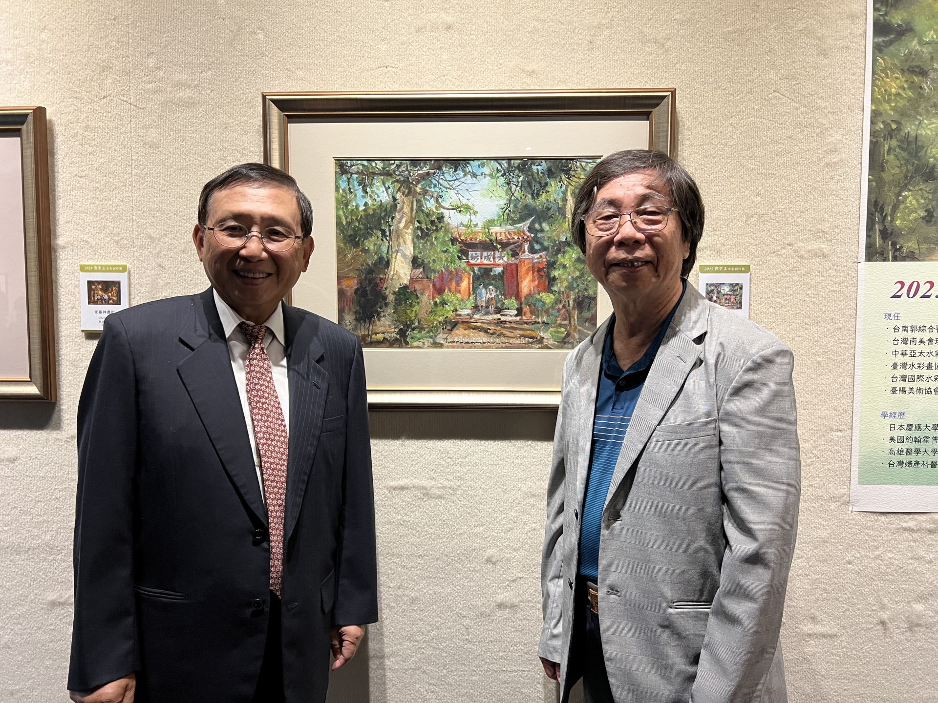 水彩畫家洪啓元,早年榮獲郭綜合醫院創辦人郭國銓在台灣南美會捐設的郭博士獎,如今成為該院總裁郭宗正作畫請益的老師,與郭家兩代的奇緣,在畫壇傳為佳話。