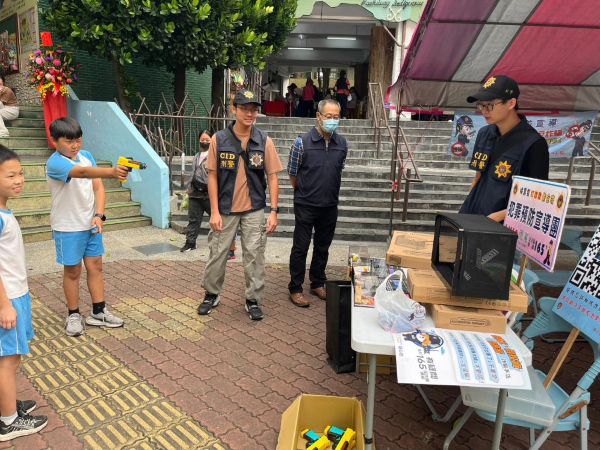 宣導攤位一開放便吸引許多師生圍觀,小朋友們手拿「ATM解除分期=一定是詐騙」、「網購低價商品莫貪心」等防詐手牌開心合影,現場洋溢孩子們的笑聲與活力。家長也趁機向刑警同仁詢問最新詐騙手法,從假投資、假客服到網購陷阱,互動十分熱絡。現場並展示常見毒品偽裝包裝,提醒孩子與家長提高警覺、遠離風險。