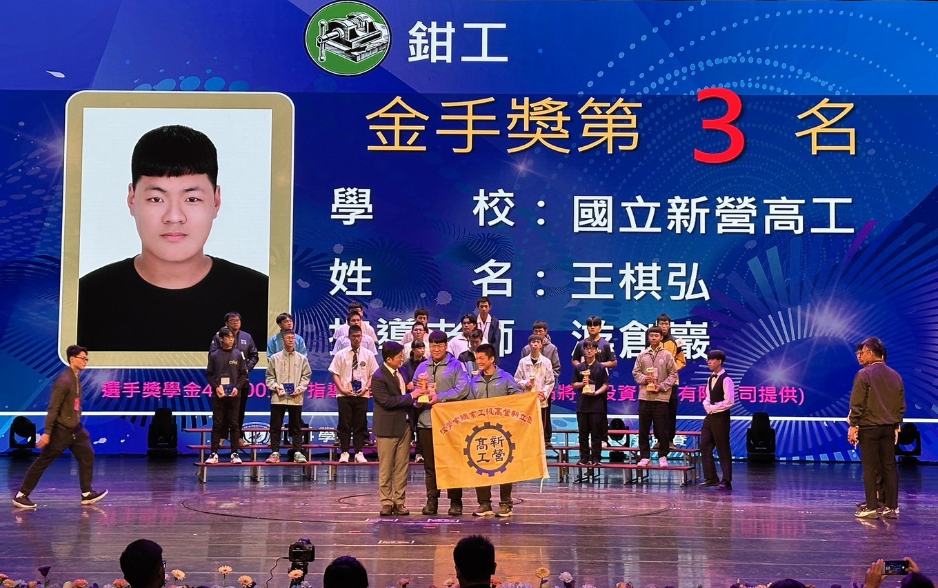特別是鉗工職類,今年榮獲金手獎第三名,也是歷年參賽最佳成績;機械科游創巖指導老師提到,鉗工職類是個極需思考、體力與技術的競賽職類,今年王棋弘選手在臨場表現非常優異,技能更是穩紮穩打累積,本身具有體格的優勢,最後還有家人支持的力量,才能造就此次競賽成績。