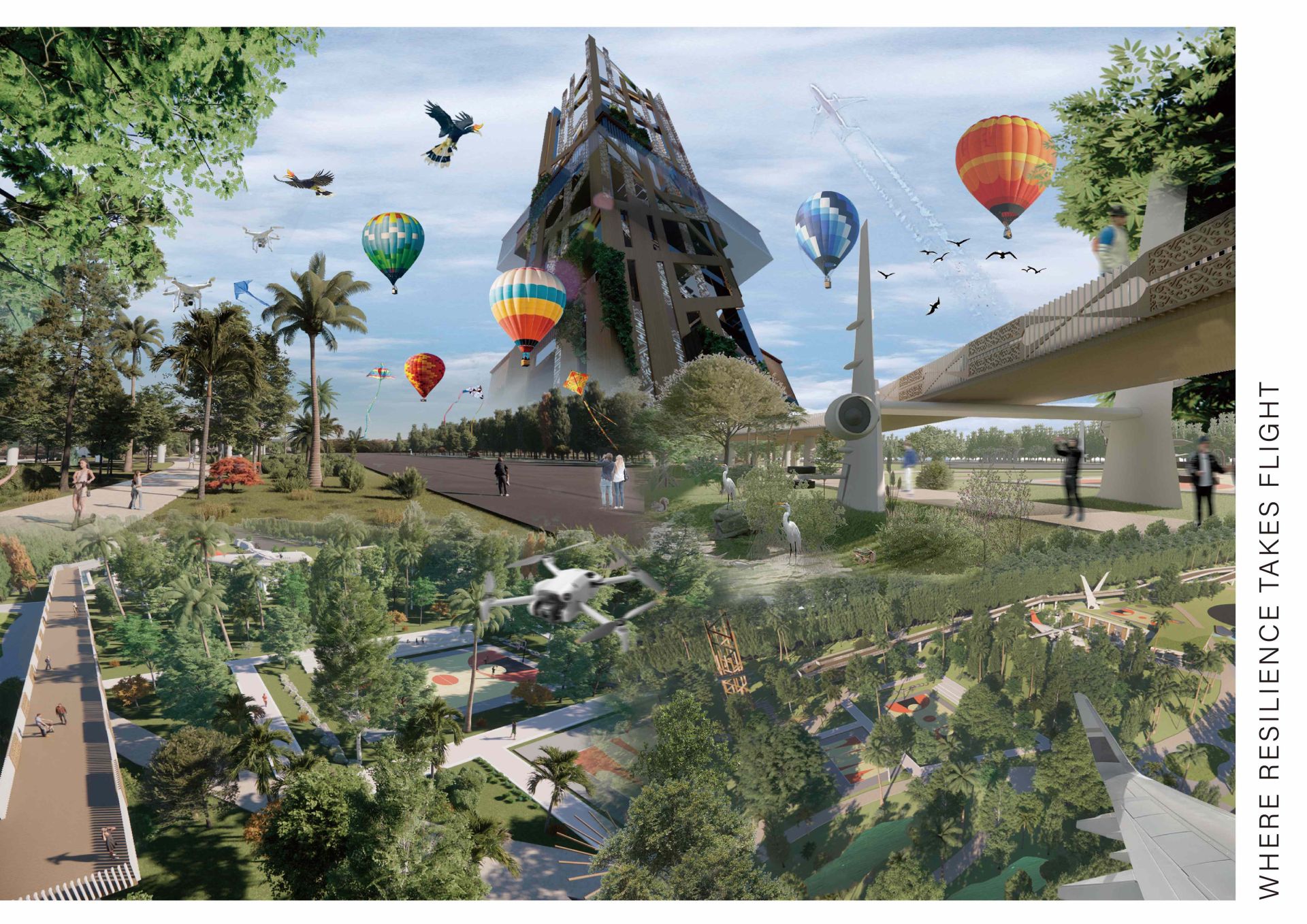 在本屆競賽中,由吳禹賢老師指導2位114級畢業生參賽,其中,康丞竣的作品「關廟騎旅」(Cycling In Guanmiao — a Cyclist Narrative Of Pi -tsaitou Adventure),以敘事設計方式串聯地方記憶,活化日治時期的寶東派出所,使其成為社區的共享空間;何松佑的作品「韌性啟航」(Where Resilience Takes Flight),將退役機場轉化為具生態、防災與休憩功能的公共公園,保留跑道記憶,回應洪水風險,強化城市韌性與永續發展,兩件作品皆贏得國際肯定,拿下「BEST OF BEST」大獎。