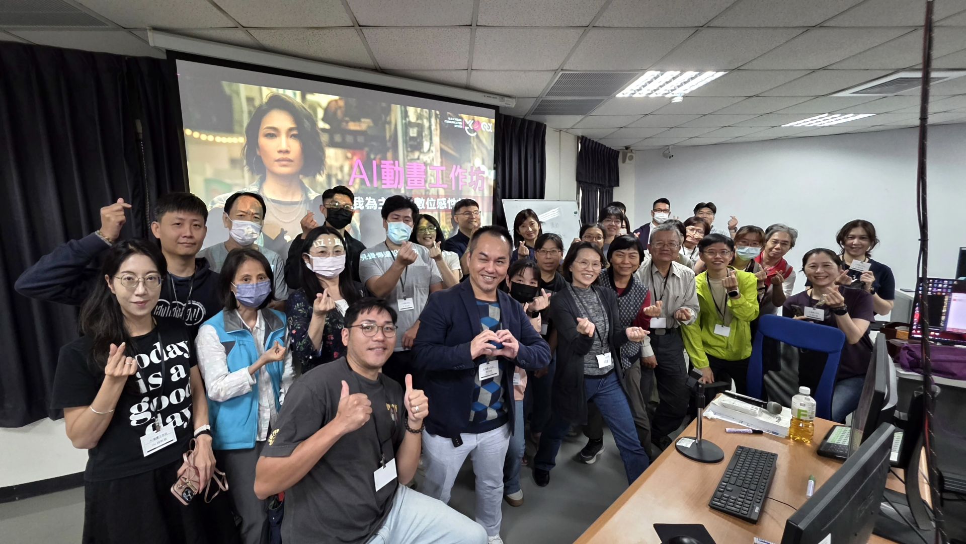 ▲崑山科大視傳系舉辦 AI 動畫工作坊,師生合影。(圖/崑山科大提供)