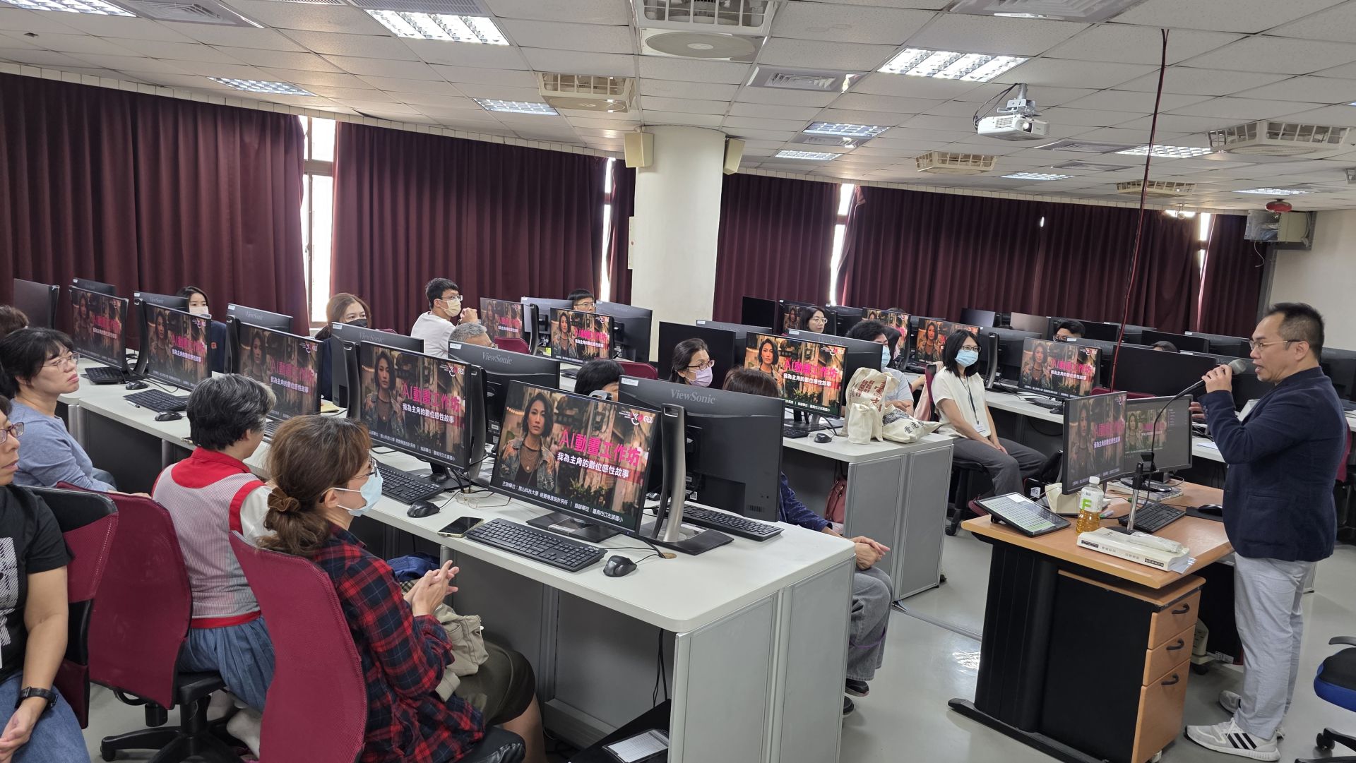 本次工作坊由崑山科大視傳系助理教授侯韋光博士擔綱主講,侯韋光博士身為視傳所傑出校友,不僅擁有豐富的 AI 影像創作經驗,更持有兩岸多項 AI 專業證照。課程中,他將複雜的運算流程轉化為易操作的數位步驟,引導學員在短時間內從劇本構思到虛擬替身生成,親手完成具個人風格的動畫作品。