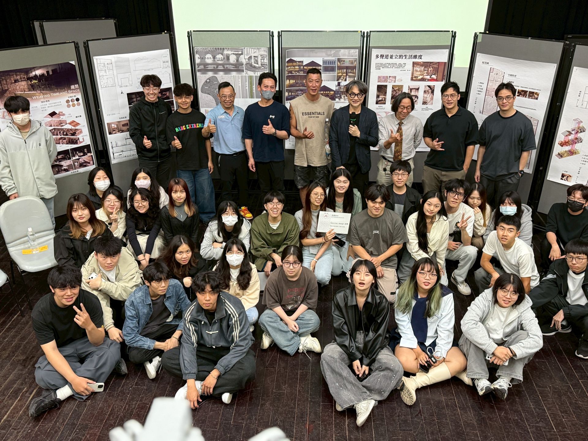 空設系透過產學合作計畫深化學生理論訓練與實務能力,學生歷經基地調查、現地測繪、概念發展、模型製作、數位建模以及版面設計等進程,總計完成二十餘件作品,最後選出三件優勝作品。在郭一勤老師指導下,由陳羿廷、李宗龍、陳思伝、王翎暐創作的「Mansion Ronge 台南」榮獲第一名,獲頒獎學金三萬元,作品轉譯台南城市特色圓環,使之如同祭壇一般的存在「信仰中心」,成為空間中的核心。