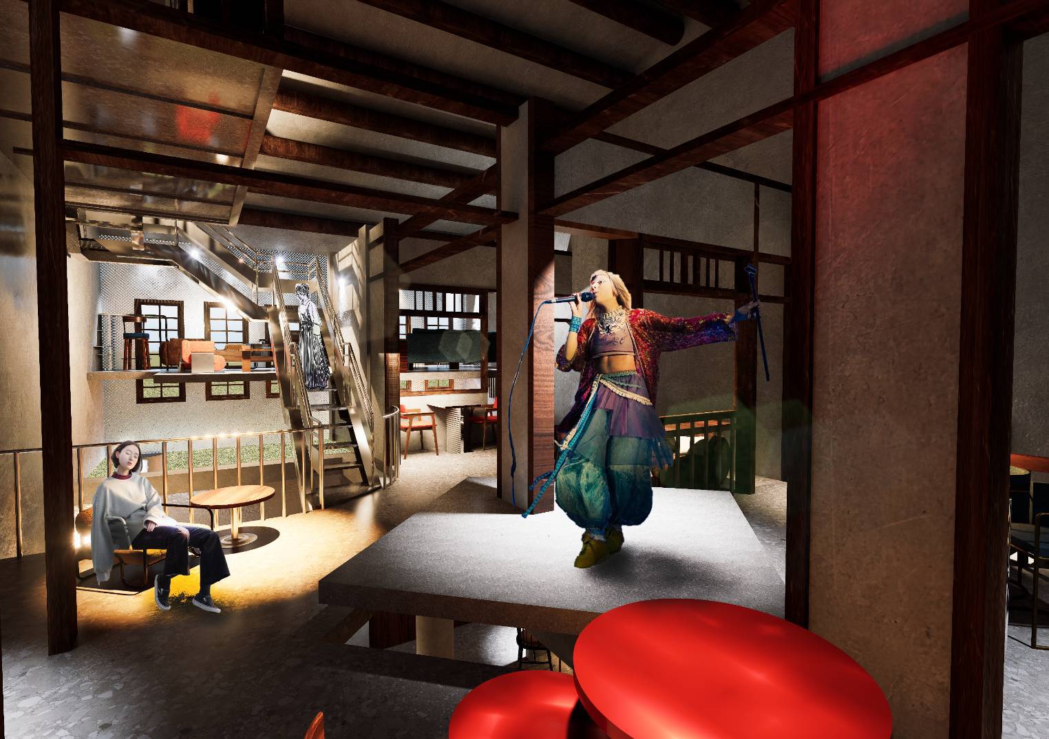 由林秀慧老師指導鄭淨勻的「織間」則獲得優勝,作品利用店屋挑高的空間特色,透過夾層的設置結合側邊採光,營造空間內外光影交織意象,再利用數個平台呈現鯤鯓與台江內海般的台江地景;黃冠傑老師指導劉又瑆的「秩序•失序」也同樣獲得優勝,透過引入街頭藝人表演的舞台空間,讓餐酒館服務內容融入在地的文化表演,用音樂串穿全場,實現五感的餐飲經驗,兩件作品分別頒發一萬元獎學金。