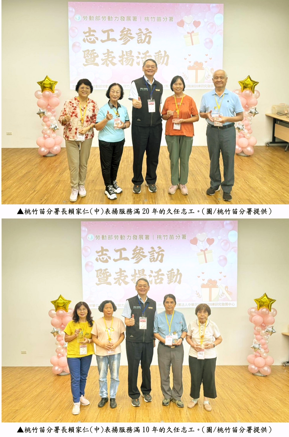 為表達對志工的肯定與感謝,勞動部勞動力發展署桃竹苗分署於10月20日在新竹縣麻布山林舉辦「114年度志工參訪暨表揚活動」,表揚服務滿10年以上的8位久任志工及9位優秀志工,感謝他們奉獻時間、熱心服務,長年站在第一線協助民眾解決問題,展現無私奉獻的精神,令人敬佩。
