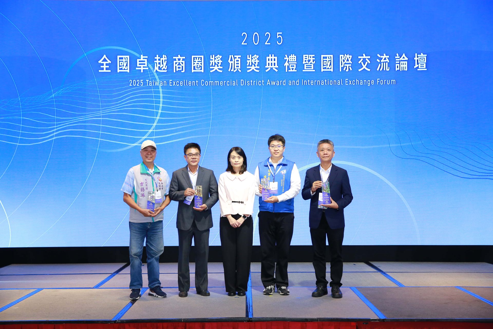 ▲榮獲2025全國卓越商圈「友善環境獎」四位商圈代表,一同和經濟部商業發展署蘇文玲署長(左3)合影。(圖/中衛發展中心提供)