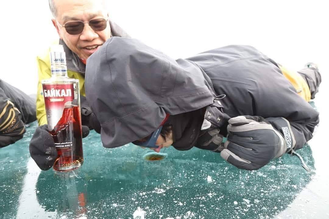 ▲深度旅遊翹楚之「航向世界鄉野旅行社」由鄉野旅行社領隊,將於2025年ITF台北國際旅展現場以最具特色、與故事性的旅遊呈現,邀請民眾一同感受真實且有靈魂的旅行。/圖:顧問蔡孟谷提供;在旅行途中,讓遊客驚喜體驗趴在冰上、挖洞倒酒在上面喝、實在特別! 貼水提醒:飲酒過量,有害健康!飲酒過量,有害健康!)