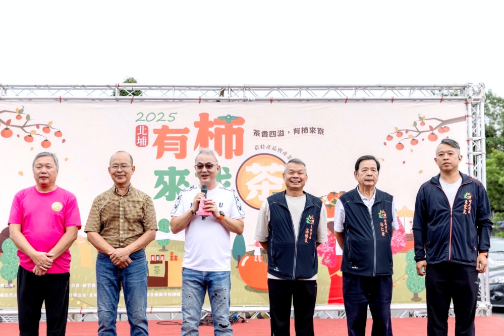 ▲2025北埔有柿來找茶農特產品暨產業文化活動今(11/8)日在北埔鄉俥亭停車場盛大登場,北埔鄉長莊明增(左3)致詞。(圖/北埔鄉公所提供)