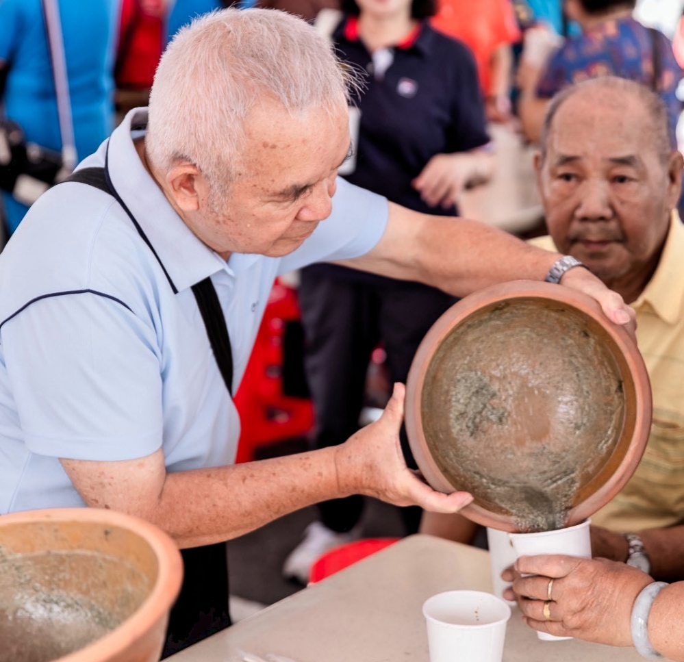 最受矚目的開幕儀式以「百人擂茶」拉開序幕。由社區成員與民眾共同參與,依古法「擂、磨、沖」將花生、芝麻與茶葉搗出層次香氣,茶湯入口溫潤回甘;百人同擂的壯觀畫面在現場掀起陣陣掌聲,象徵北埔「一起做、一同享」的凝聚精神,也把「以茶會友、共享豐收」的祝福送給每位到場的朋友。