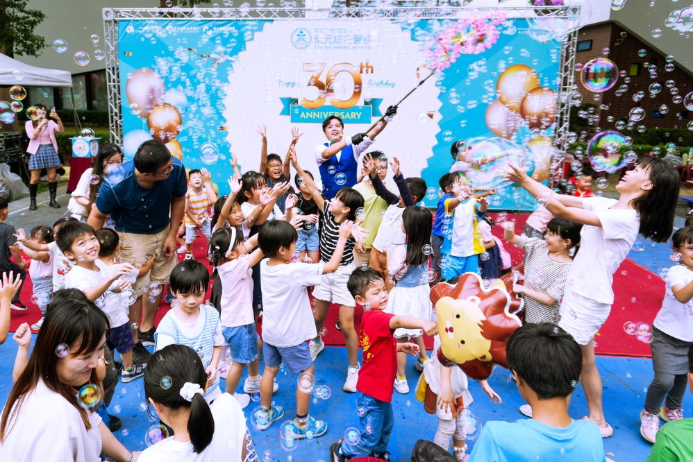 ▲東元綜合醫院今(11/8)日盛大舉辦「30週年院慶暨員工親子家庭日活動」,魔幻泡泡秀、小丑雜耍互動表演及摸彩大放送輪番登場,為員工與親子帶來滿滿歡笑與驚喜。(圖/東元綜合醫院提供)