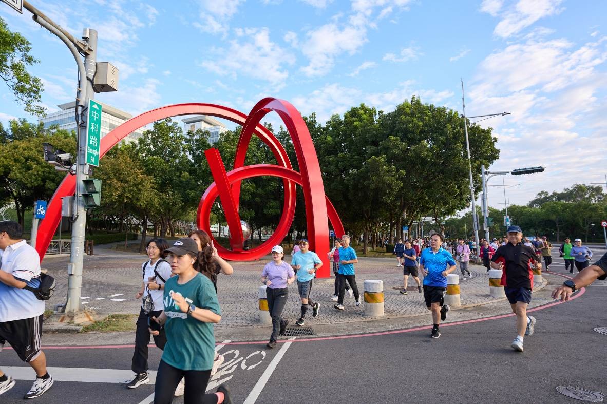 ▲2025「中科盃路跑活動—中科Happy Run」熱鬧登場。路跑民眾行經中科園區公共裝置藝術「流動.連結」。(圖/中科管理局提供)